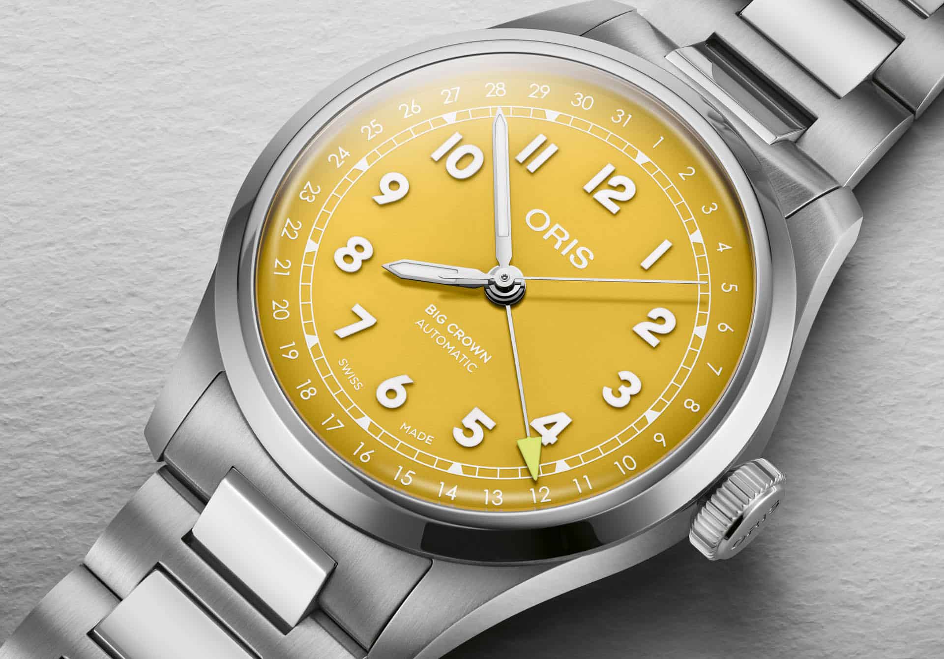 El nuevo color amarillo que tenemos en nuestra colección Big Crown realmente te anima. En la feria, el personal usa mucho el amarillo, se ve bien y no importa si no coincide exactamente con el color que llevas puesto. Se complementa muy bien. Hace unos 20 años, solías preocuparte de que los colores que combinabas fueran del mismo tono. Hoy en día, ya no importa tanto. Puedes combinar diferentes colores que armonicen entre sí.