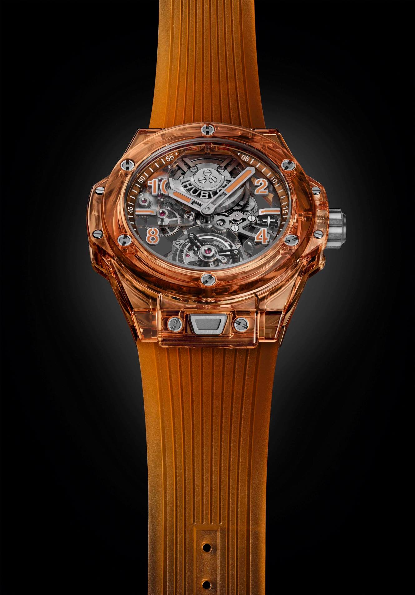 WW: Cuéntenos del nuevo Big Bang Tourbillon Automatic Orange Sapphire, ¿cuánto tiempo se trabajó en el movimiento y cuál es el límite en los colores del zafiro para Hublot?