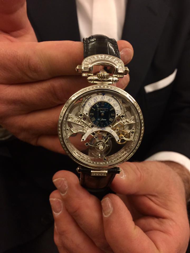 Pascal Raffy: A la edad de 36 años, mi hija la mayor le dijo a mi padre que estaba muy contenta, pero que sentía que no me veía por todos los viajes que hacía en ese entonces y fue desde ahí que decidí parar todo. Tenía una gran industria de farmacéuticas y 18 meses después era un hombre feliz cuidando de su familia. Después de eso, un banquero y ahora gran amigo, sabía que coleccionaba guardatiempos de bolsillo y modernos, por lo que se acercó a mí para pedirme ayuda con algunas inversiones. Yo ya conocía Bovet y sabía de su historia, pero no conocía sus modelos actuales, pero entendí que el lujo verdadero siempre tendrá una identidad clara, son hechos a escalas pequeñas y son hechos a mano. Un guardatiempo Bovet se reconoce por su alma educada desde hace más de 2 siglos, eso me cautivó.