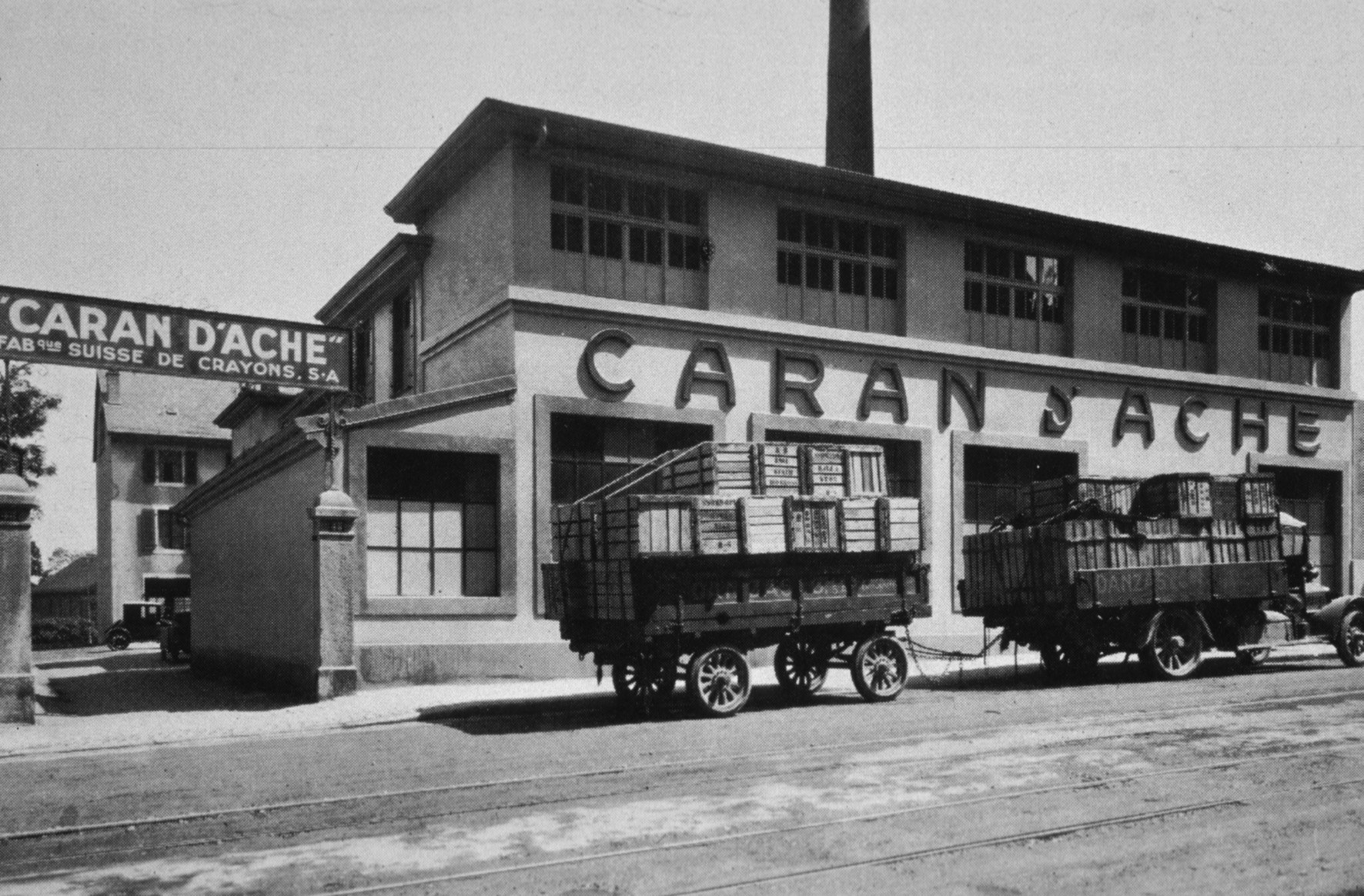 Fundada en 1915, en 1924 Arnold Schweitzer renombraría la factoría de: Fabrique de Crayons Ecridor, a Fabrique de Crayons Caran d´Ache, debido a su admiración por el famoso artista francés Emmanuel Poiré, cuyo pseudónimo en ruso era “Karandash”. A partir de esta nueva firma, Schweitzer ampliaría su visión a una línea de producto que comprende: lápices de colores, crayones, grafitos, instrumentos de escritura y hasta artículos de piel, todos ellos con diferentes tipos de acabados, pero siempre con la misma calidad: Swiss Made.