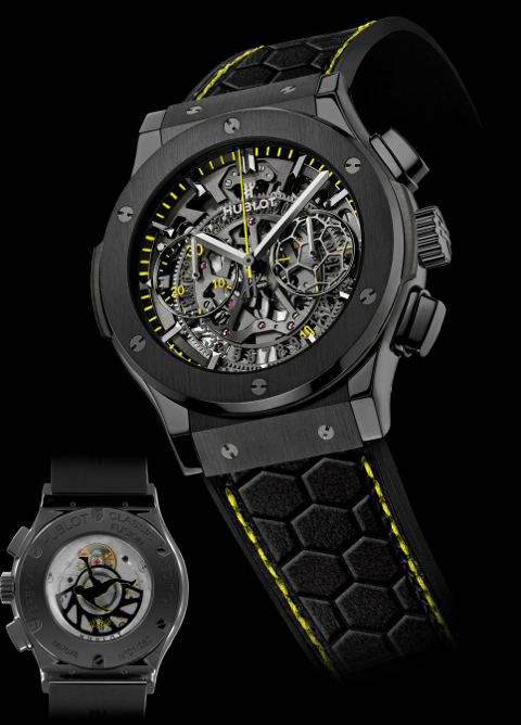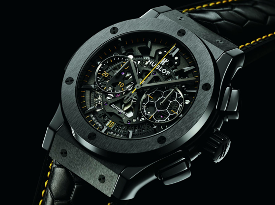 Pelé: Sí, Hublot me consultó con respecto al diseño y solicité que incluyera algún motivo importante que atesoraran las nuevas generaciones, porque el tiempo pasa muy rápido y la gente se olvida de los sucesos que han marcado la historia, es por ello que al rotor cuenta con la silueta de un futbolista realizando la técnica conocida como “la bicicleta”.