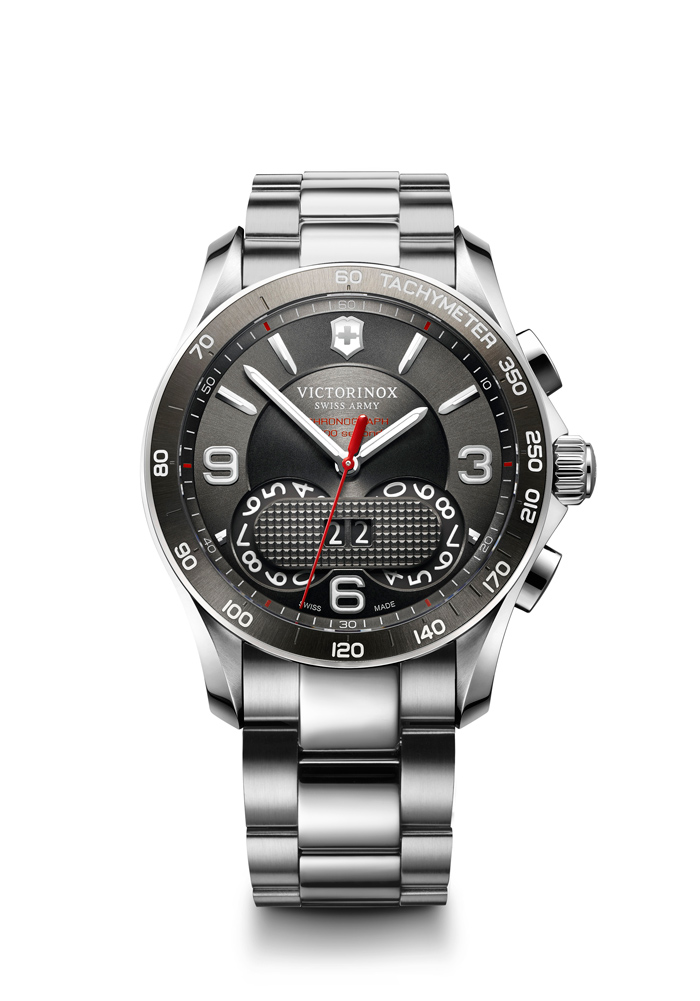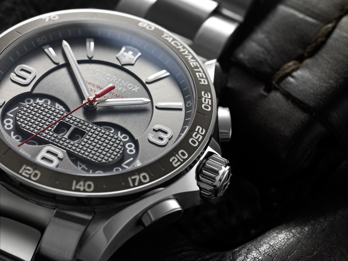 El protagonista de los estrenos de Victorinox en el 2013, posee un movimiento de cuarzo realizado de manera conjunta con Soprod (SOP FM13D), que anima: horas, minutos, segundos, fecha grande, calendario perpetuo y cronógrafo 1/100 con lectura digital y escala taquimétrica.