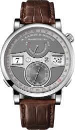 Esta referencia es una complicación extrema dentro de Lange, ofrece las funciones de calendario perpetuo con cronógrafo flyback y tourbillon, indicador de reserva de marcha: 50 horas de autonomía. Calibre mecánico de cuerda manual conformado por 729 piezas y dotado de 50 horas de autonomía. La referencia actual se ofrece en caja de oro blanco con carátula de oro rojo macizo y agujas a juego. Limitado a 100 piezas, se abraza al pulso mediante una correa de piel de aligátor cosida a mano.
