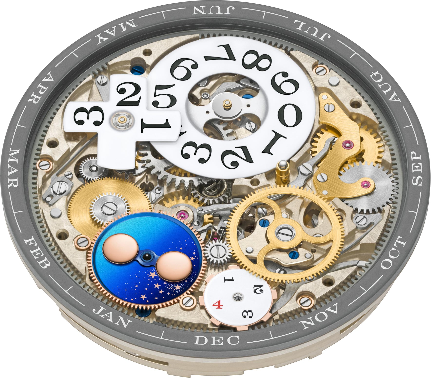 Un reloj con calendario perpetuo no sólo cumple con su funcionalidad cada 29 de febrero según el ciclo de año bisiesto. Un calendario perpetuo proporciona la fecha, el día, el mes y, por lo general, las fases lunares. Teniendo en cuenta automáticamente la cantidad de días del mes y el ciclo de los años bisiestos, es una obra maestra de la arquitectura y la miniaturización. Con sus meses que duran 31, 30 o 28 días, y 29 días en febrero cada cuatro años, nuestro calendario gregoriano plantea un gran desafío para los relojeros. Ellos deben reproducir estas variaciones en un movimiento mecánico.