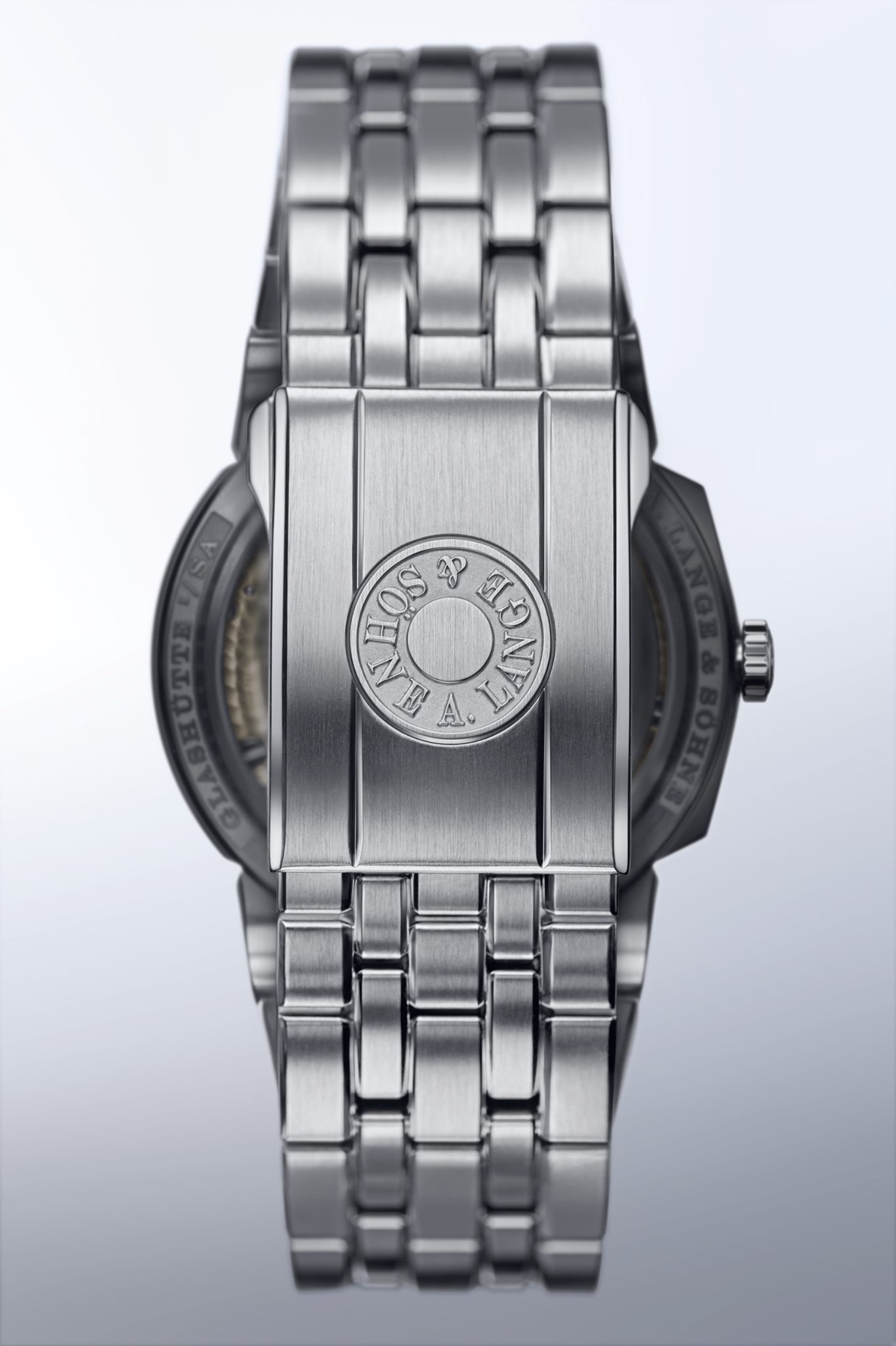 Nada en A. Lange & Söhne carece de detalle, es por ello la pulsera de acero debía contar con las mejores características. Su capacidad de adaptabilidad es de hasta 7 mm en pequeños pasos gracias a su cierre desplegable de seguridad. La pulsera de acero inoxidable es muy cómoda de llevar y su longitud se puede adaptar hasta siete milímetros en pequeños pasos gracias a su cierre desplegable de seguridad. Dicha acción sucede al mantener presionado el botón grabado con la firma A. Lange & Söhne.
