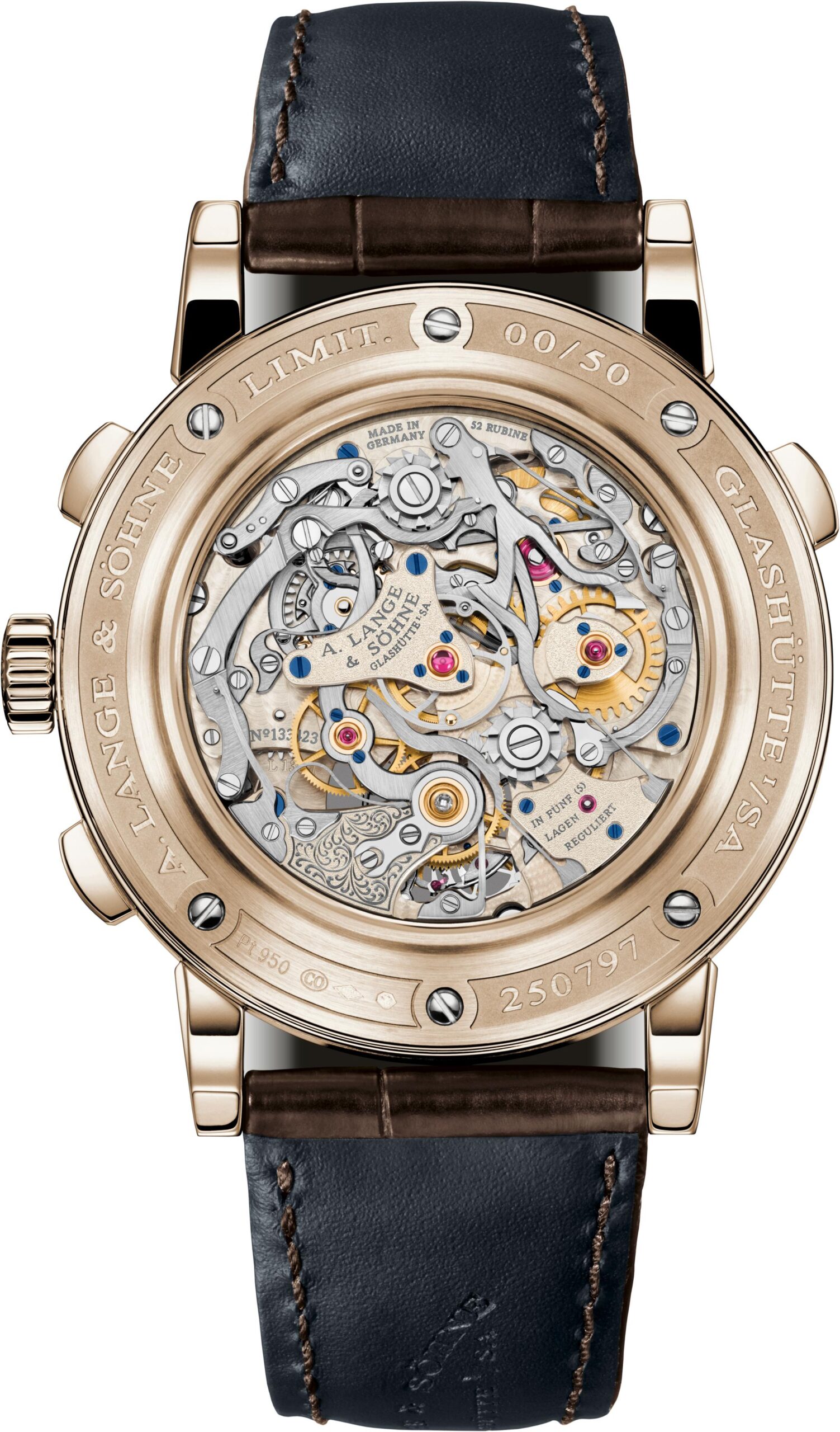 - Calibre: L133.1, ajustado en 5 posiciones; platina y puentes de German silver, grabados y decoraciones a mano exclusivos de la edición (684 componentes, cadena de 636 piezas individuales)