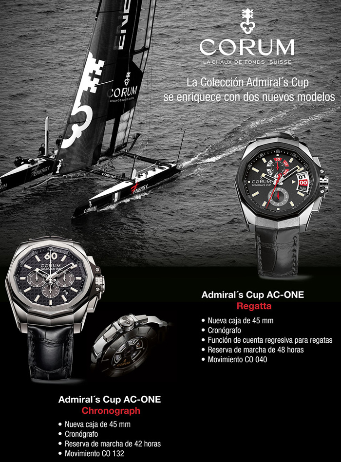 Es por ello que su colección relojera, específicamente una de sus líneas más populares, haya sido enfocada este año a preservar los valores que la legendaria comunión de CORUM con el viento y el mar mantiene desde hace décadas. Razón por la cual Watches World tiene el privilegio de compartirte a los nuevos miembros de la familia Admiral´s Cup: AC-ONE Regatta y AC-ONE Chronograph.
