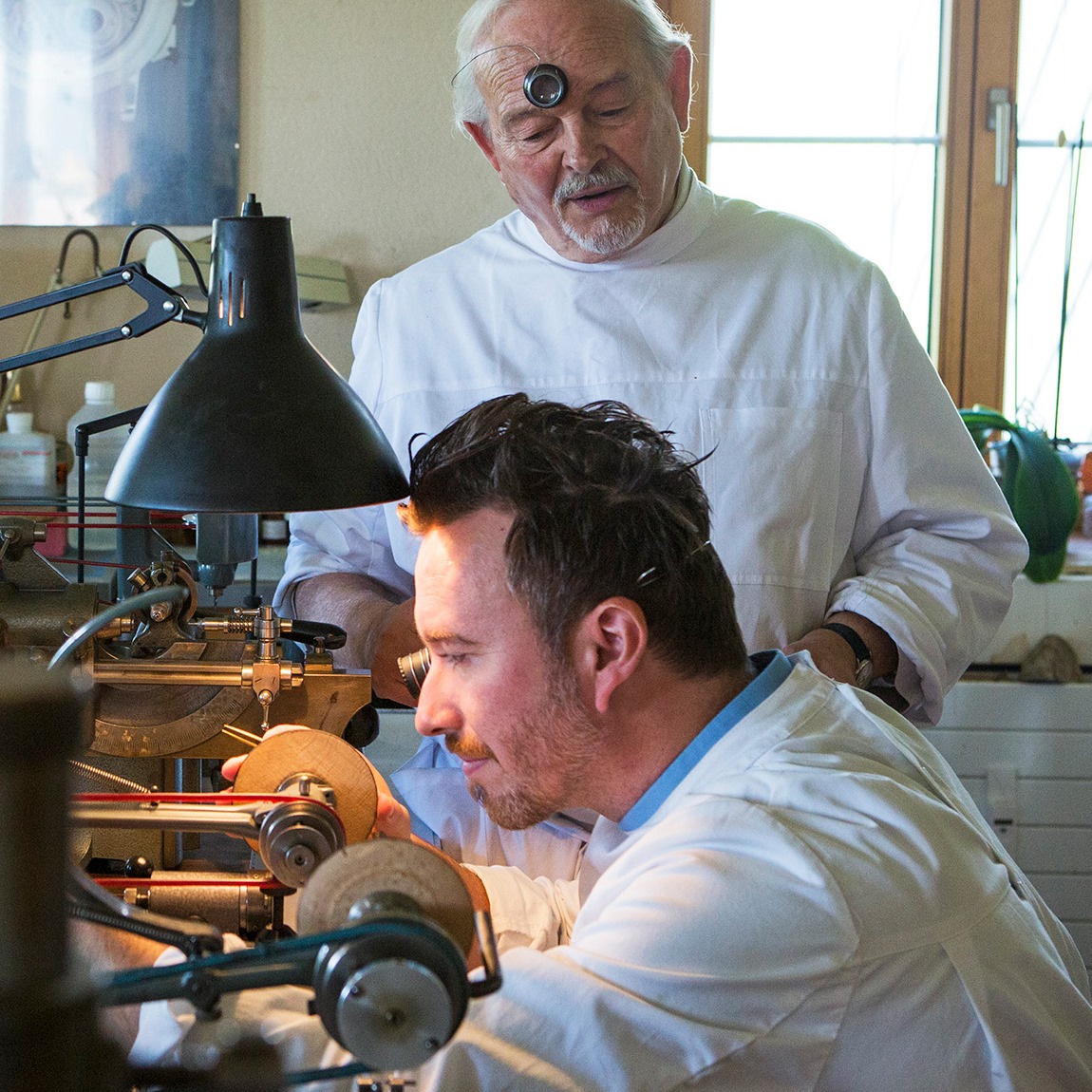 Hervé cuenta con una amplia trayectoria en la fabricación de Alta Relojería, laboró en Bovet y posteriormente en Dimier, previo a asociarse con Fabrice para la creación de Alchemists.