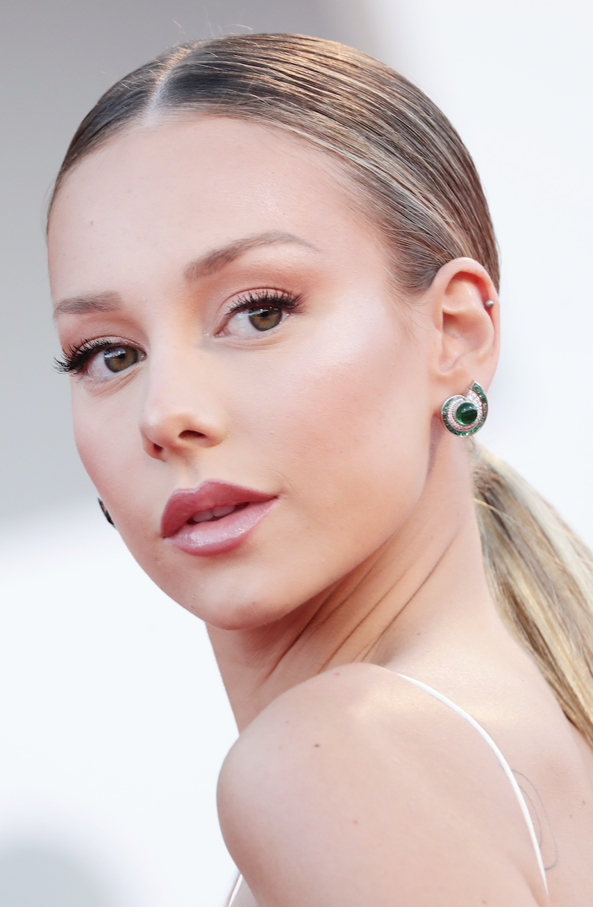 Alejandro Speitzer y Ester Expósito optaron por lucir joyería y relojería de Bvlgari. La joven española deslumbró con en aretes de alta joyería en oro blanco con 2 esmeraldas de corte cabochon y un anillo.