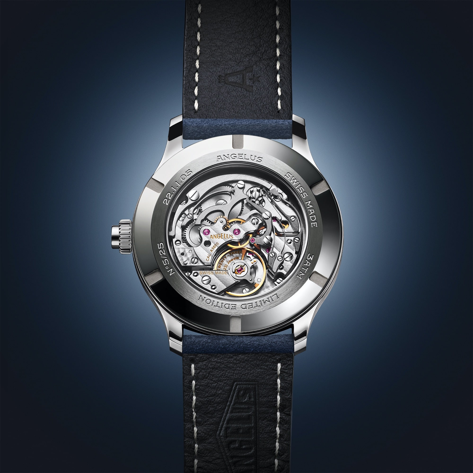 Tanto en “Indianapolis Blue” como “Silverstone Grey”, Angelus Instrument De Vitesse es de inspiración automotriz. Al prescindir de cualquier contador adicional, la carátula preserva su elegancia y simpleza. Con una escala taquimétrica impresa, es una pieza que se consolida como un “instrumento” ideal para medir la velocidad.