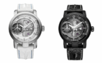 Mientras el mecanismo del tourbillon ejecuta una vuelta por segundo para garantizar la regularidad de la marcha, el micro rotor plenamente integrado utiliza esta misma energía para brindar autonomía al tren de engranajes. El nombre de cada una de estas piezas ha sido determinado gracias al color de los metales en los cuales se encuentra realizada la caja: “Fuego” para el guardatiempos de oro rosa y “Agua” para la versión en acero; “Aire” utilizando el titanio y “Tierra”, que corresponde al acero con tratamiento PVD.