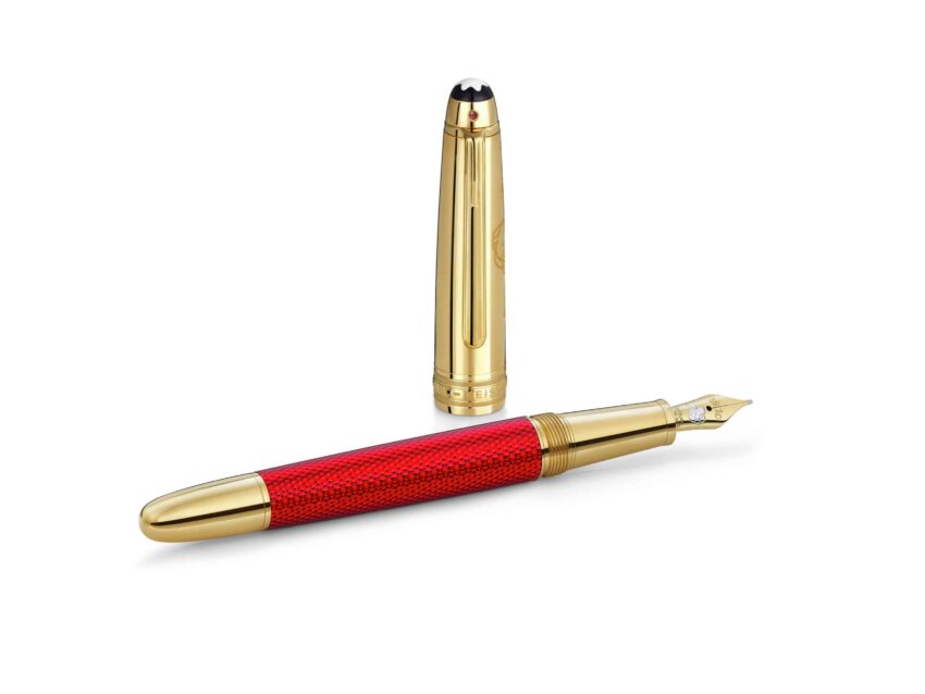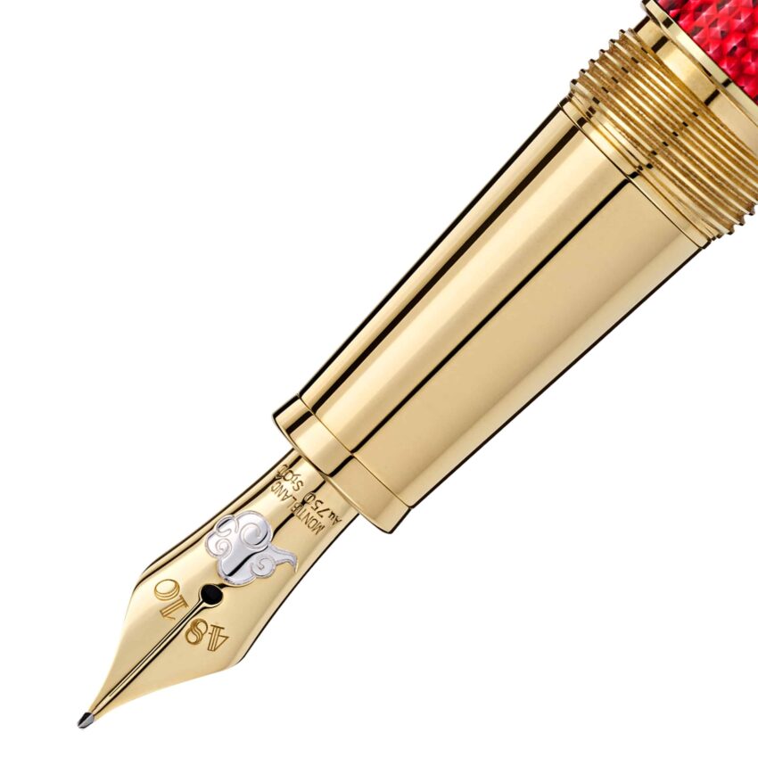 Para este Año Nuevo Chino, Montblanc rinde homenaje a varios símbolos chinos asociados a la suerte. Tanto en pluma fuente como rollerball, el capuchón de esta pluma se encuentra revestido en oro con múltiples grabados de nudos chinos. Se trata de una particular técnica artesanal que nació en el periodo de los reinos combatientes en China. Actualmente, se siguen utilizando como símbolos de buen augurio en sus principales festividades.
