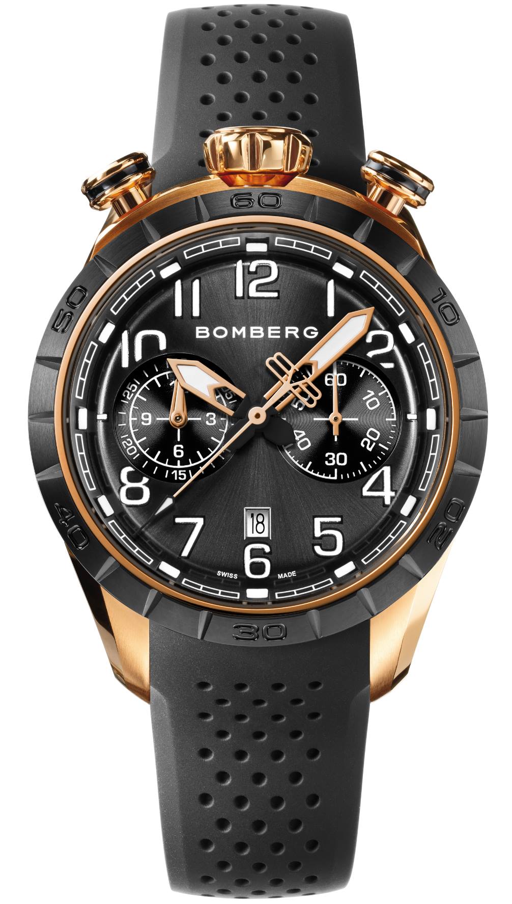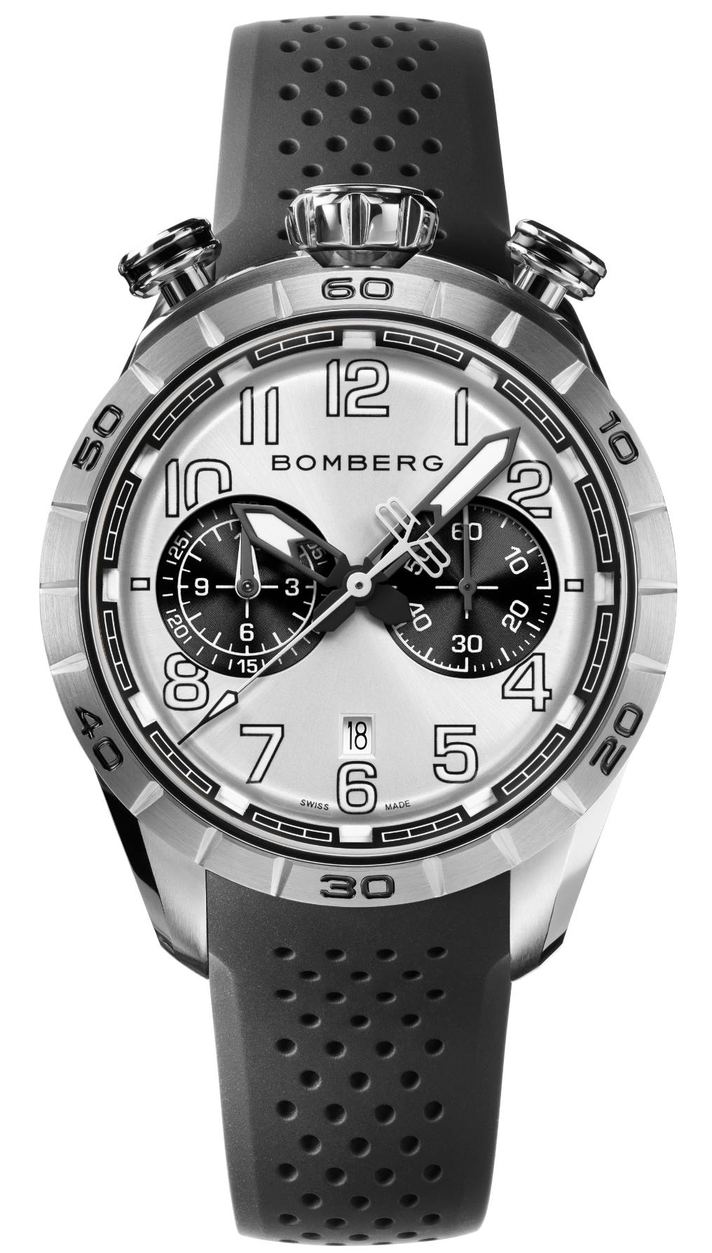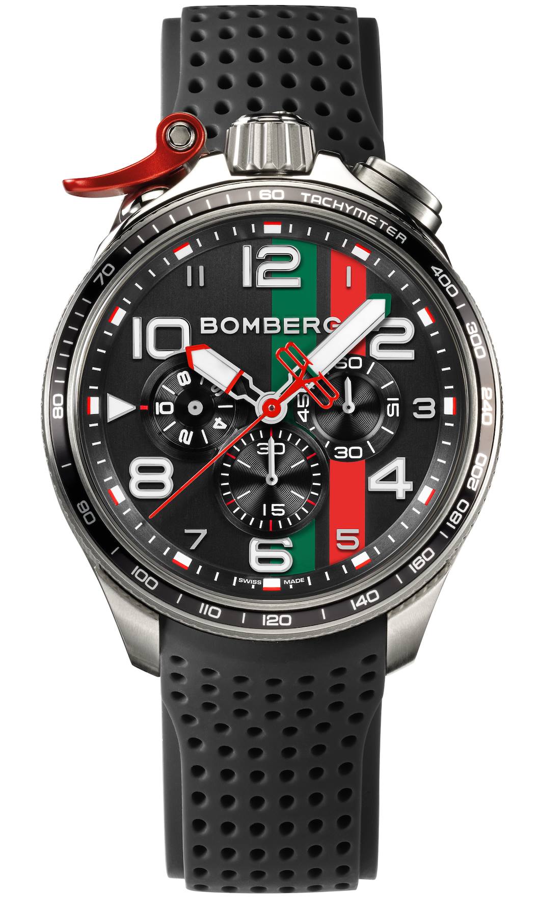 Dotado de un calibre mecánico automático calibre SW-200 de Sellita, la pieza vibra a 4 Hz y lo hará a la perfección gracias a una frecuencia de 4 Hz. Esta pieza presenta una cierta irreverencia icónica para Bomberg, sin embargo se trata del reloj más elegante y “tradicional” dentro de la línea. Se abraza al pulso gracias a una correa de silicón perforado tremendamente cómoda, mientras que las diferentes carátulas ofrecen tonalidades en rojo, azul y gris. La caja de acero inoxidable está desarrollada en 43 mm de diámetro y puede ser recubierta con PVD negro.