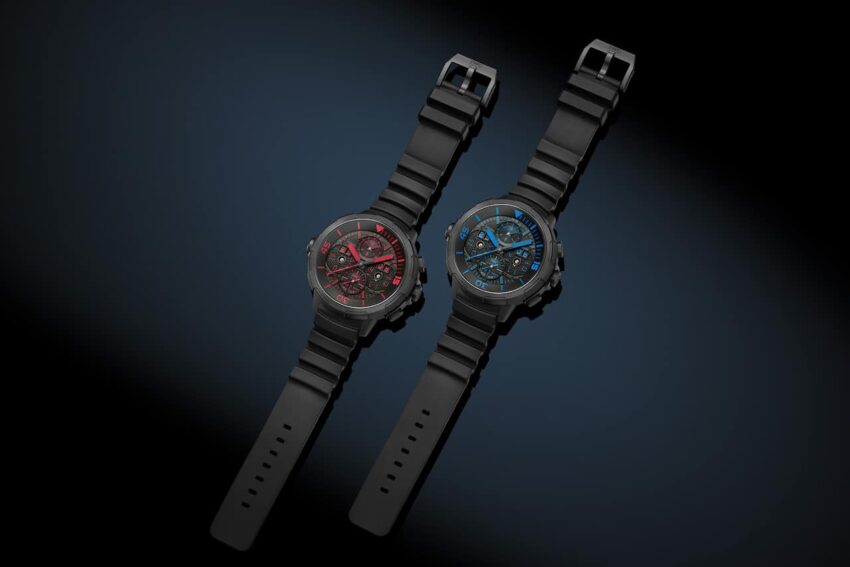 Cada versión está limitada a 25 piezas. La imponente caja de 49 mm de estos Aquatimer está hecha en Ceratanium. Tienen esferas negras y correas de caucho del mismo color. Uno tiene Super-LumiNova roja en la carátula, las agujas y el bisel giratorio interior, que indica el tiempo de inmersión, mientras que en el otro el Super-LumiNova es azul. Los nuevos relojes acompañan al villano Black Manta (Yahya Abdul-Mateen II) y al Dr. Stephen Shin (Randall Park).