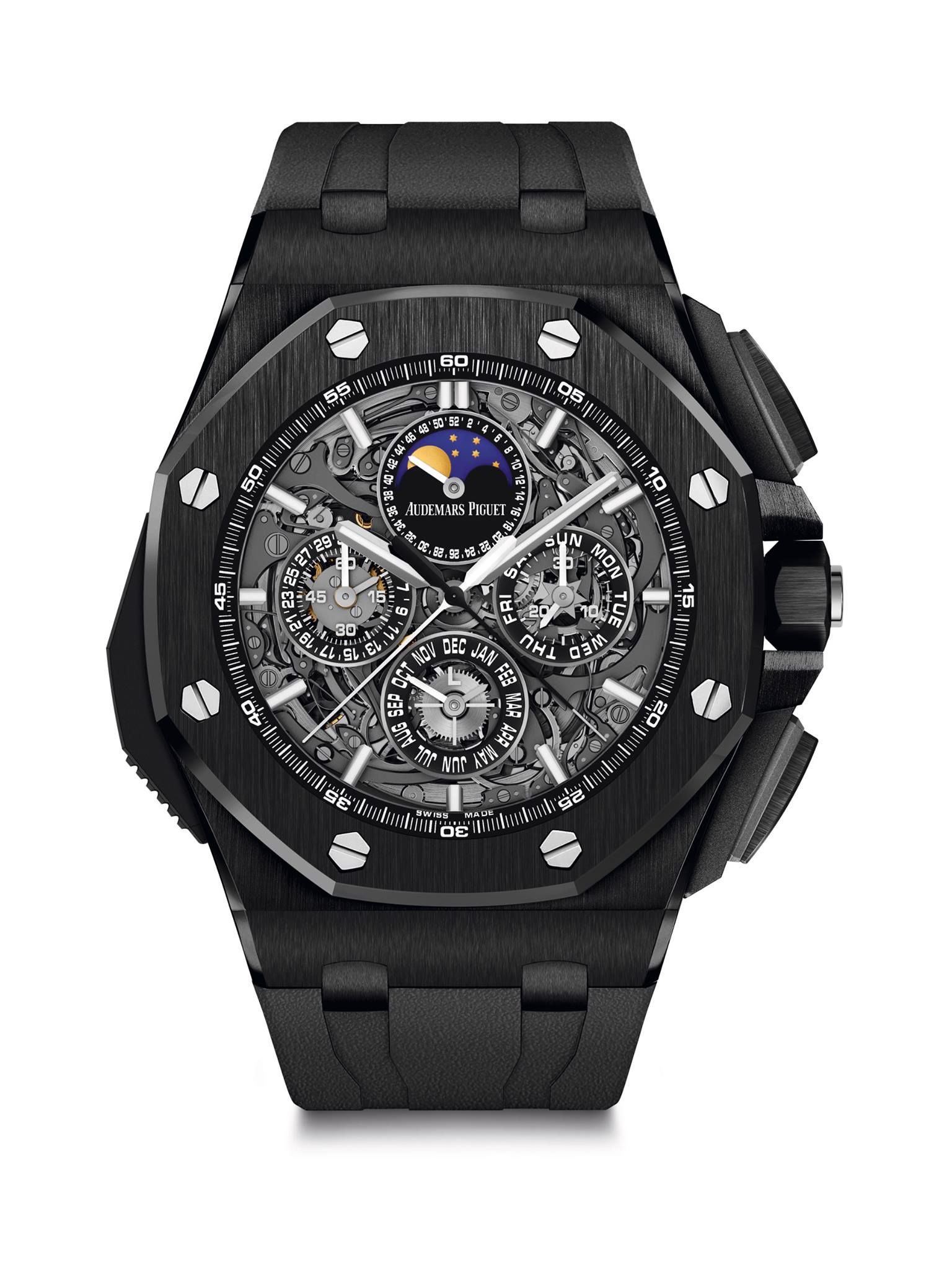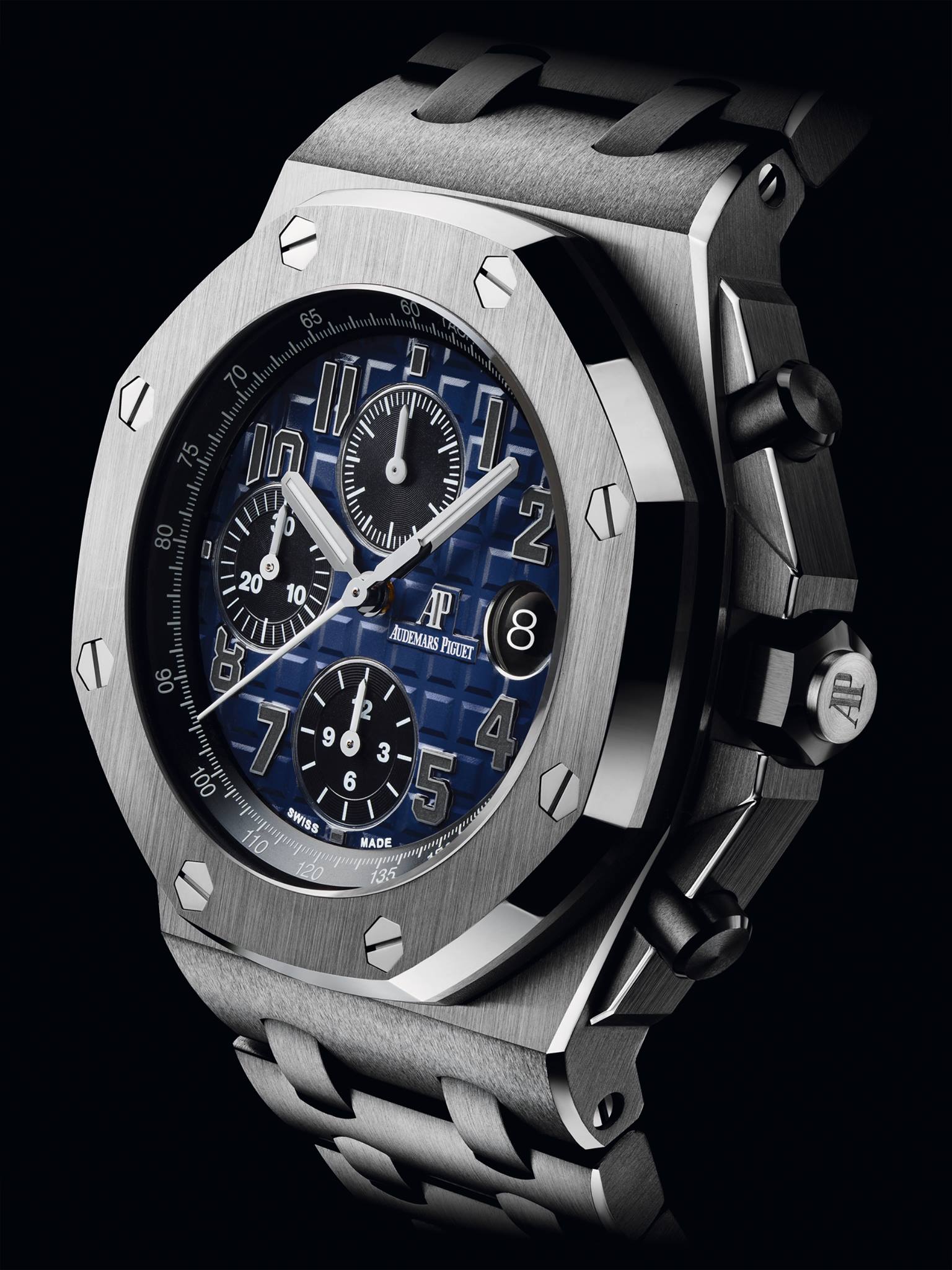 Asimismo la firma presenta más referencias en Offshore para la celebración de aniversario, tales como un reloj de cerámica, extensiones en el Selfwinding Chronograph, más relojes Diver, y un par de Offshore Grande Complicaction, que ya conocíamos, pero mejores. También notamos extensión de gama y referencias en el Royal Oak Tourbillon Extra-Thin, Jumbo Extra-Thin, Selfwinding Chrono y Perpetual Calendar. Específicamente de este último destacamos una pieza pensada para Latinoamérica, diseñada en oro amarillo con totalizadores en azul y limitado a 100 piezas.