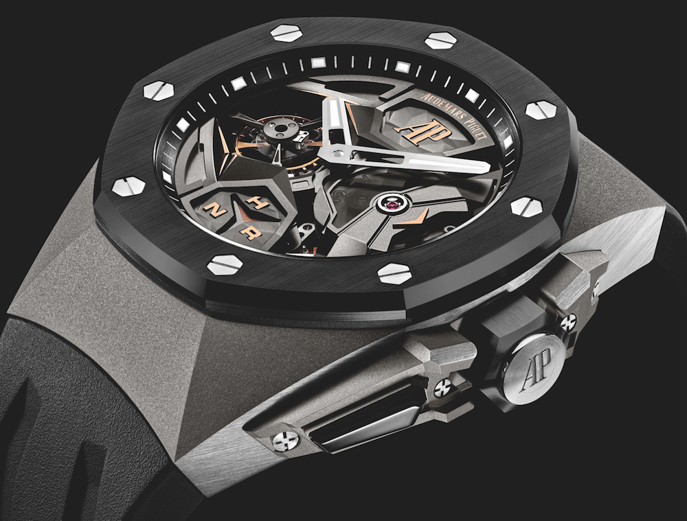 A través de un brazalete de caucho negro con hebilla desplegable AP de titanio arenado con microesferas o con una correa de piel de aligátor negra, este modelo se convertirá en el mejor aliado de un hombre con gustos exigentes en la relojería.