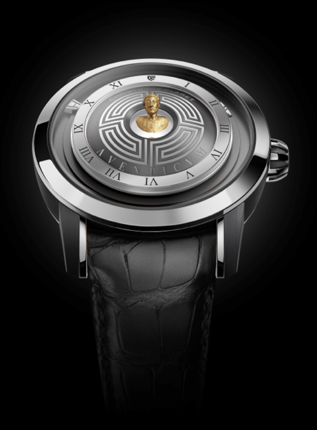 Un reto gracias a la miniaturización del busto encontrado en Vaud, mismo que exhibe la figura de Marcus Aurelius amplificada gracias a un sistema “mirascope”, inspirado en los telescopios a fin de amplificar la escultura original de 2.5 mm de altura hasta 4.8. Asimismo, las 36 facetas del tallado del cristal realizarán el trabajo a fin de poderle exhibir por reflexión al tope de la carátula, formada por un laberinto en representación a la época de conquista romana.