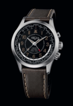 - AVIATOR GMT // Caja: 42 mm de acero cepillado / Movimiento: mecánico automático calibre Cricket V-10 / Carátula: negra mate con números Super-LumiNova® / Funciones: horas, minutos y segundos en el centro; despertador / Hermeticidad: 100 metros.