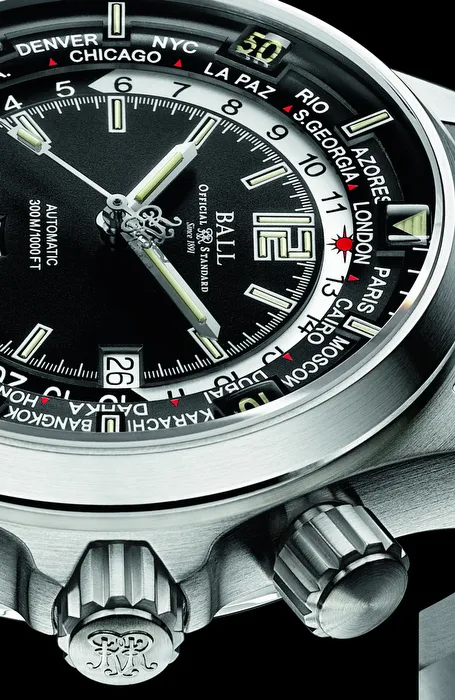 En relojería, el movimiento GMT proporciona una función vital para los viajeros de hoy en día ya que ofrece la hora de dos lugares en la muñeca. Con una segunda zona horaria de 24 horas que se cambia fácilmente en función de la ubicación del usuario, los relojes BALL GMT son únicos. Para mejorar la legibilidad, la segunda pantalla de la zona horaria ha incorporado los conocidos microtubos luminosos de gas suizos.