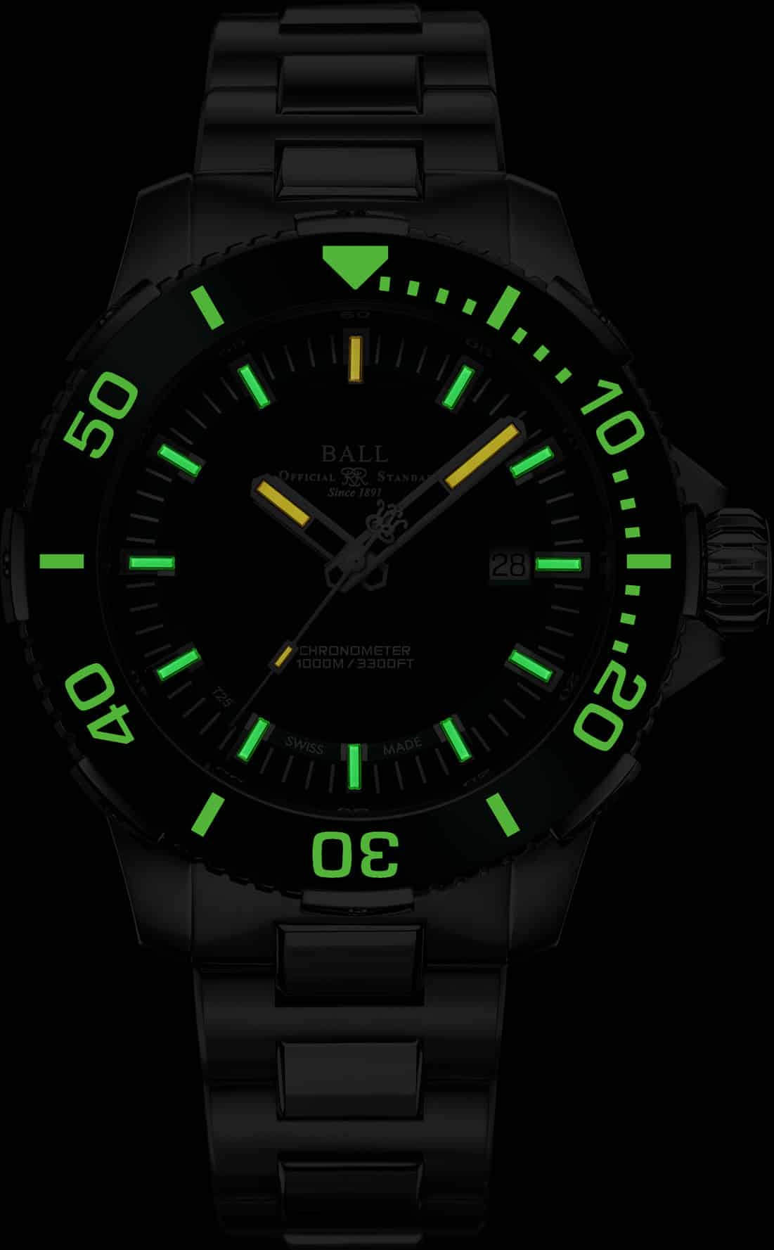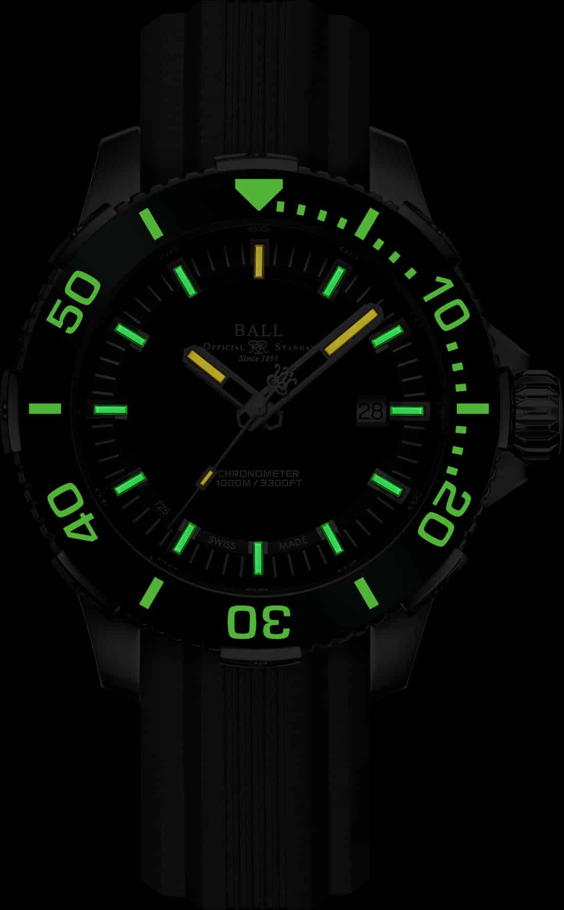 La propuesta de BALL Watch es sumamente atractiva en todo lo anterior, ofrece el rasgo único de las cápsulas de tritio que ofrecen luz verdadera sea cual sea la profundidad y sin límite de tiempo.