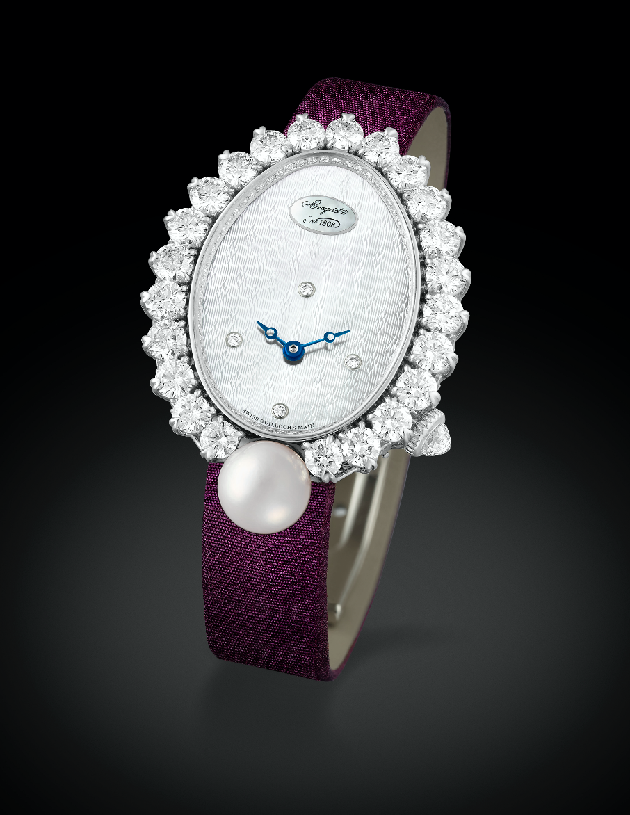 La colección Haute Joaillerie presenta piezas relojeras con aires de realeza que recuerdan a los lujosos universos de la selecta clientela de Montres Breguet. Este año, y por primera vez, Breguet rinde homenaje a la emperatriz Josefina, primera esposa de Napoleón Bonaparte, al presentar una pieza que le está dedicada en exclusiva, el reloj Perles Impériales Haute Joaillerie. Desarrollada en oro blanco de 18 quilates con forma ovalada. se encuentra engastado con diamantes y una perla Akoya, cuenta con carátula de madreperla y agujas pomme évidée, y se anima gracias a un movimiento de carga automática calibre 586/1. Finalmente, esta pieza se asocia a un conjunto de perlas para sortija y pendientes.