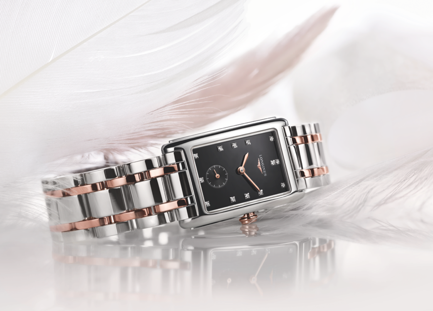 Su estructura se basa en líneas geométricas con curvas suaves para magnificar la elegancia contemporánea y la feminidad de los modelos, mientras que el toque de color sólido (oro rosa) para las agujas, eslabones del brazalete y la corona, coinciden con la referencia de su selección. Las cajas de acero de la colección Longines DolceVita cuentan con una corona de oro macizo y también se ofrecen en una versión con diamantes. Los modelos están disponibles en cuatro tamaños y son animados por un calibre de cuarzo de alta precisión.
