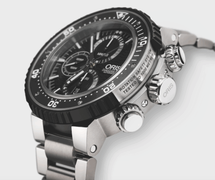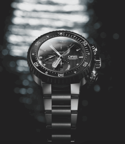 La casa no ha dejado desprotegida la colección ProDriver donde ha podido desde hace 7 años mejorar la hermeticidad, la legibilidad y su bisel unidireccional, ahora nos presenta una nueva interpretación en una caja de Titanio de 51 milímetros con resistencia a 1,000 metros de profundidad. Pieza clave este año su bisel texturizado para poder moverlo de manera más fácil y su sistema de bloqueo “Rotating Safety System” que evita movimientos del mismo para no perder en ningún momento la medición del tiempo marcado por el buzo, que además detrás de su funcionamiento esta el movimiento Oris Calibre 774.