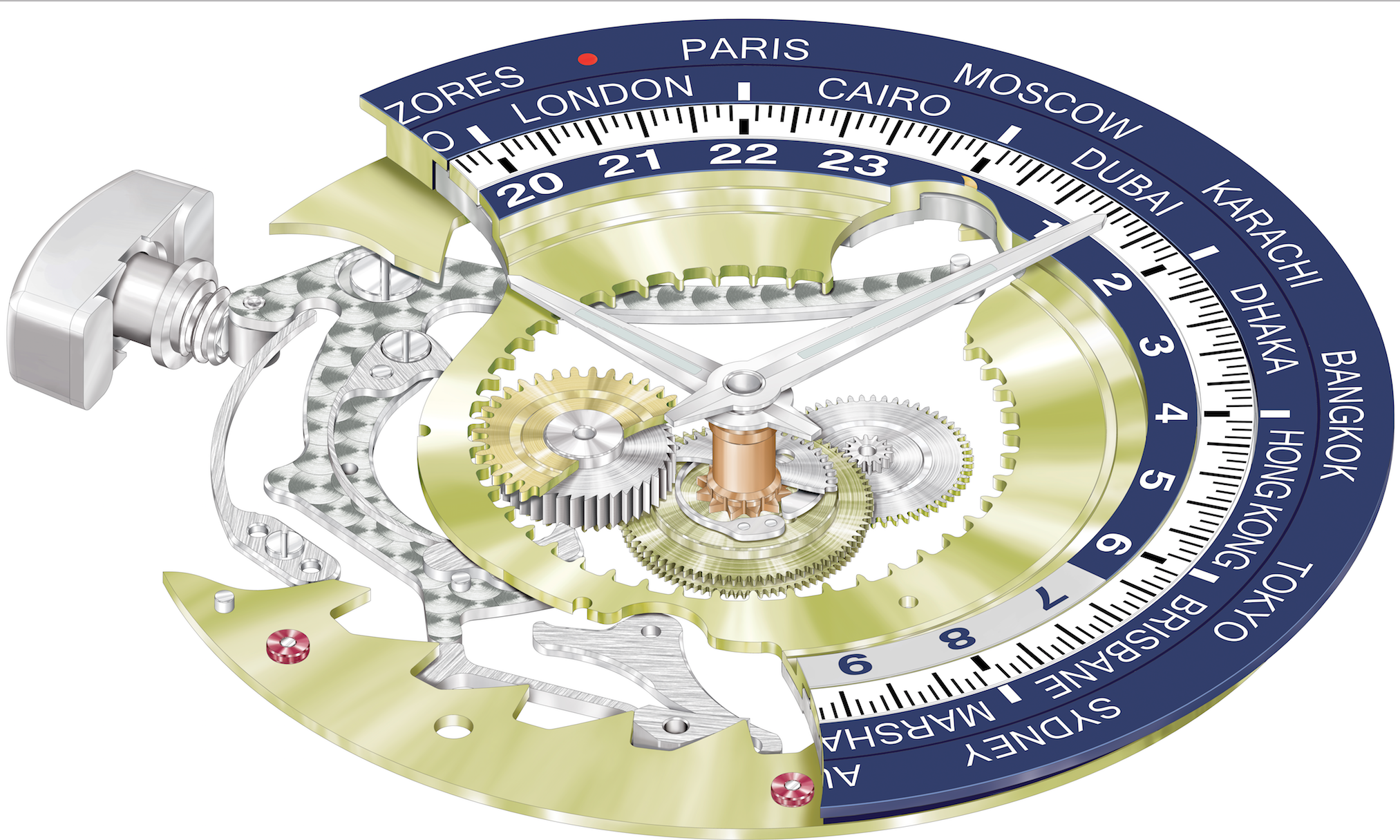 Por primera vez le conocemos a Patek Philippe una Hora Universal conjugada con un cronógrafo y el resultado ha sido espectacular y llegó para quedarse ya que nos aseguraron que será parte de la colección permanente. Toma inspiración de un modelo de la casa que data de 1940, con lo cual el DNA esta intacto, sin embargo ahora con sus dos funciones y su color azul, combinados con el guilloché en carátula, luce como nunca el disco de las ciudades del mundo. En oro blanco cuenta con 39.5 milímetros de diámetro. Hoy el World Time Chronograph se convierte en una nueva complicación que será tradicional en la casa.