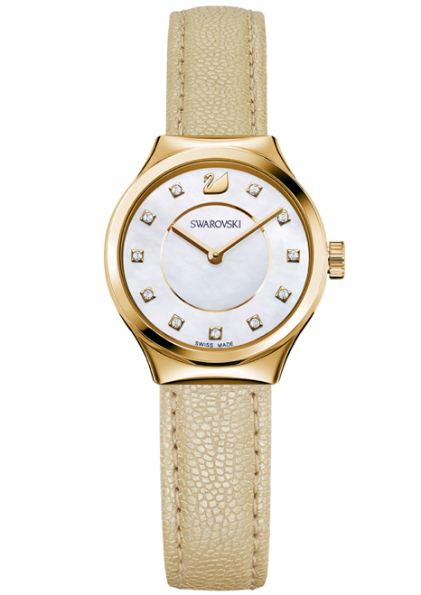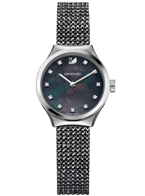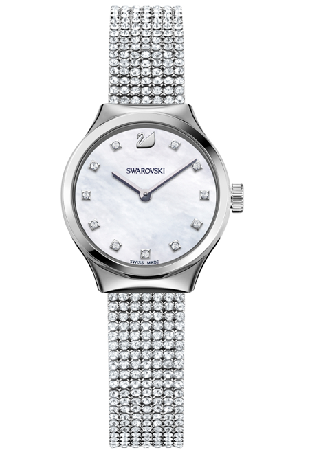 Dulce y decididamente femenina. La carátula es de madreperla, mientras que los índices son cristales aplicados. Se abraza gracias a una correa de piel o a un brazalete Crystal Mesh, de acuerdo a la configuración de su elección.
