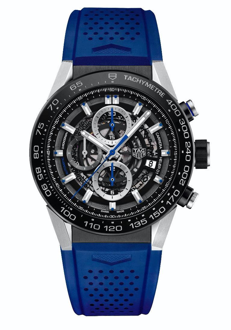 Tres modelos son propuestos de forma esencial y simplificada, el primero destaca gracias a la aparición de un brazalete metálico de acero con acabados pulidos y cepillados. En la segunda apuesta destaca una pieza desarrollada enteramente en titanio, añadiendo ligereza y durabilidad vs la resistencia del acero (multiplicada por dos), lleva por nombre “Carrera Heuer 01 Grey Phantom”. Finalmente la apuesta por la cerámica en sus nuevos Aquaracer se replica en carrera, combinando este material irrayable e hipoalergénico en sintonía con el caucho. Diferentes referencias añaden color y exploran con versatilidad el gusto de su amplia clientela. Todas las novedades están propulsadas por un calibre de cronógrafo automático con rueda de pilares, dotado con un disco de fecha visible y esqueletizado, y una nueva masa oscilante a juego y personalizable. La potencia y precisión de este motor está garantizada por 50 horas y a un ritmo de 4 Hz.