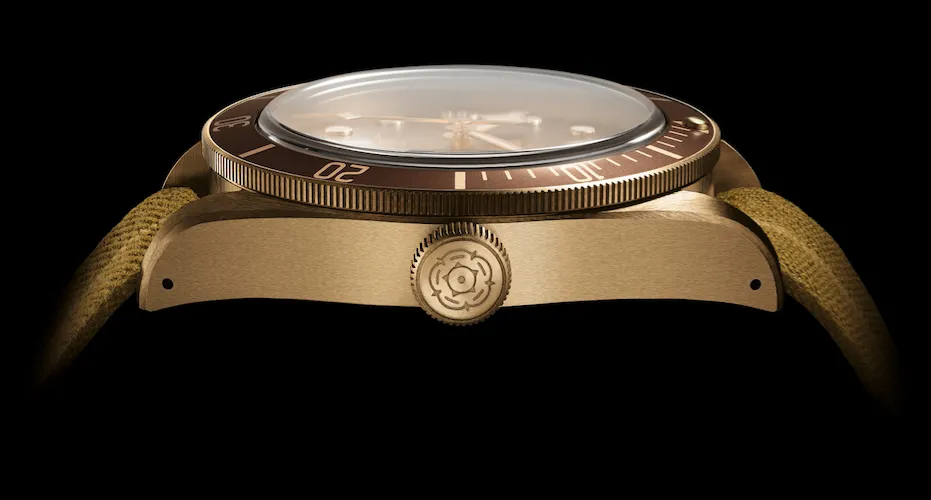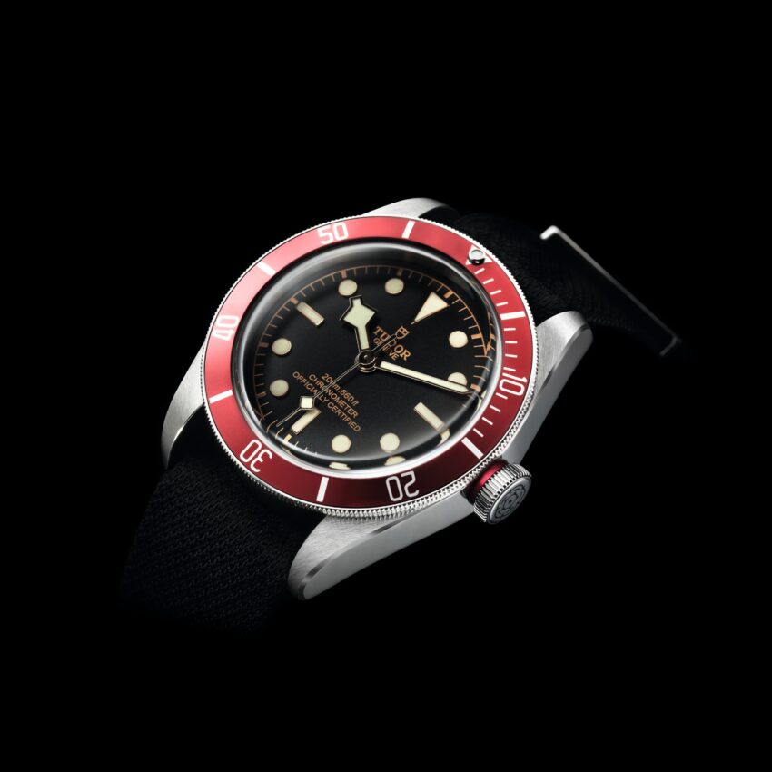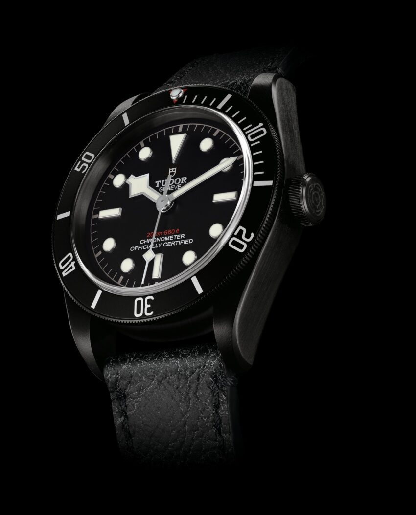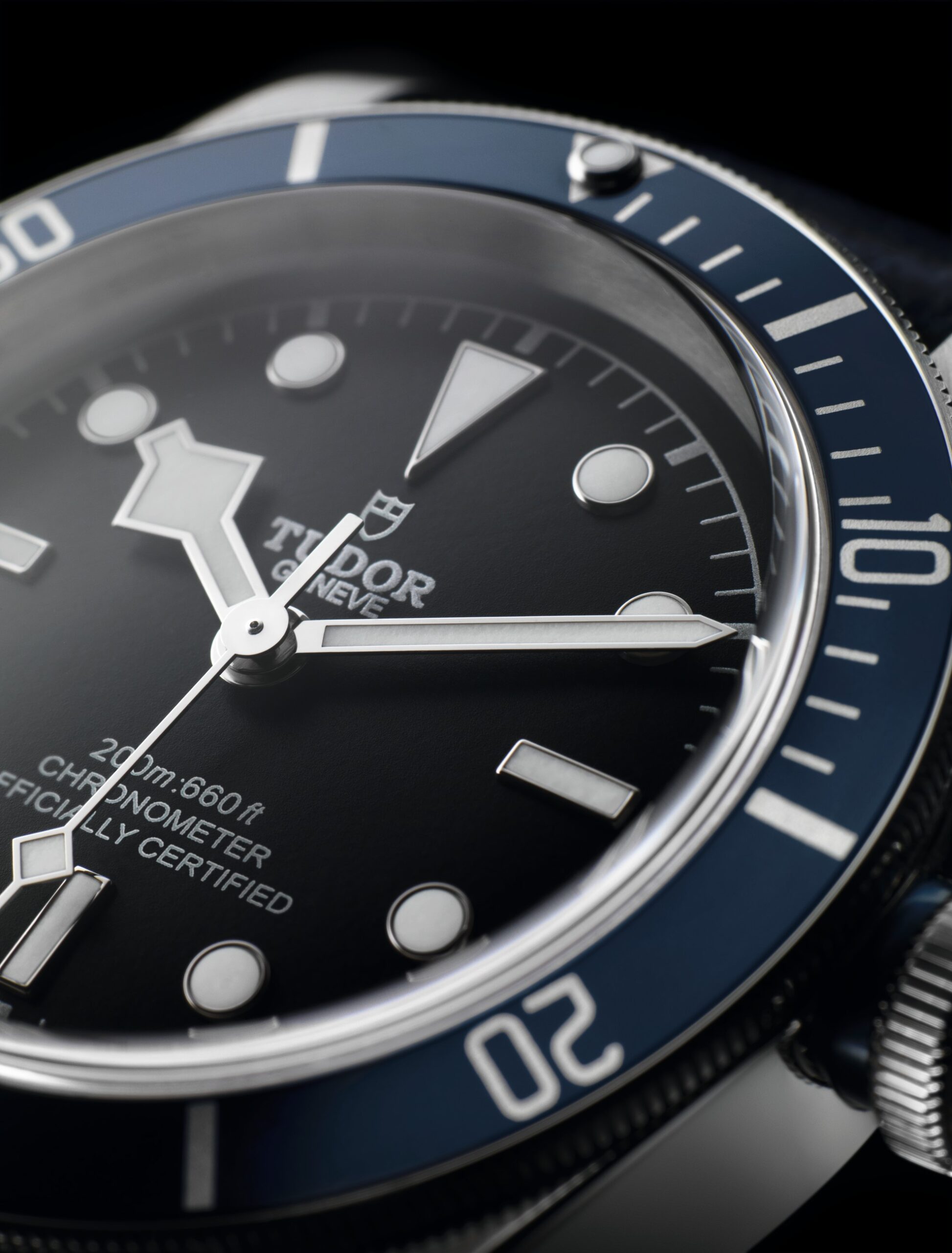 Los elementos más característicos del reloj de submarinismo en acero negro mate, el modelo más nuevo de la familia Heritage Black Bay se inspira en la historia de TUDOR, las líneas generales y el cristal y la esfera abombados son herencia de los primeros relojes de submarinismo TUDOR. La corona, denominada Big Crown, es igual a la de la famosa referencia 7924 de 1958. Las agujas, con una forma angulosa muy característica, conocidas con el nombre de “snowflakes”, provienen de los relojes entregados a gran escala a la Marina francesa en la década de los 70. Otro elemento destacable lo representa la indicación de profundidad garantizada grabada en rojo en la esfera y con el triángulo rojo en el bisel giratorio.