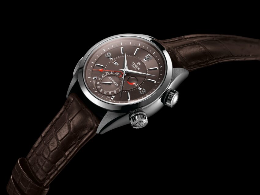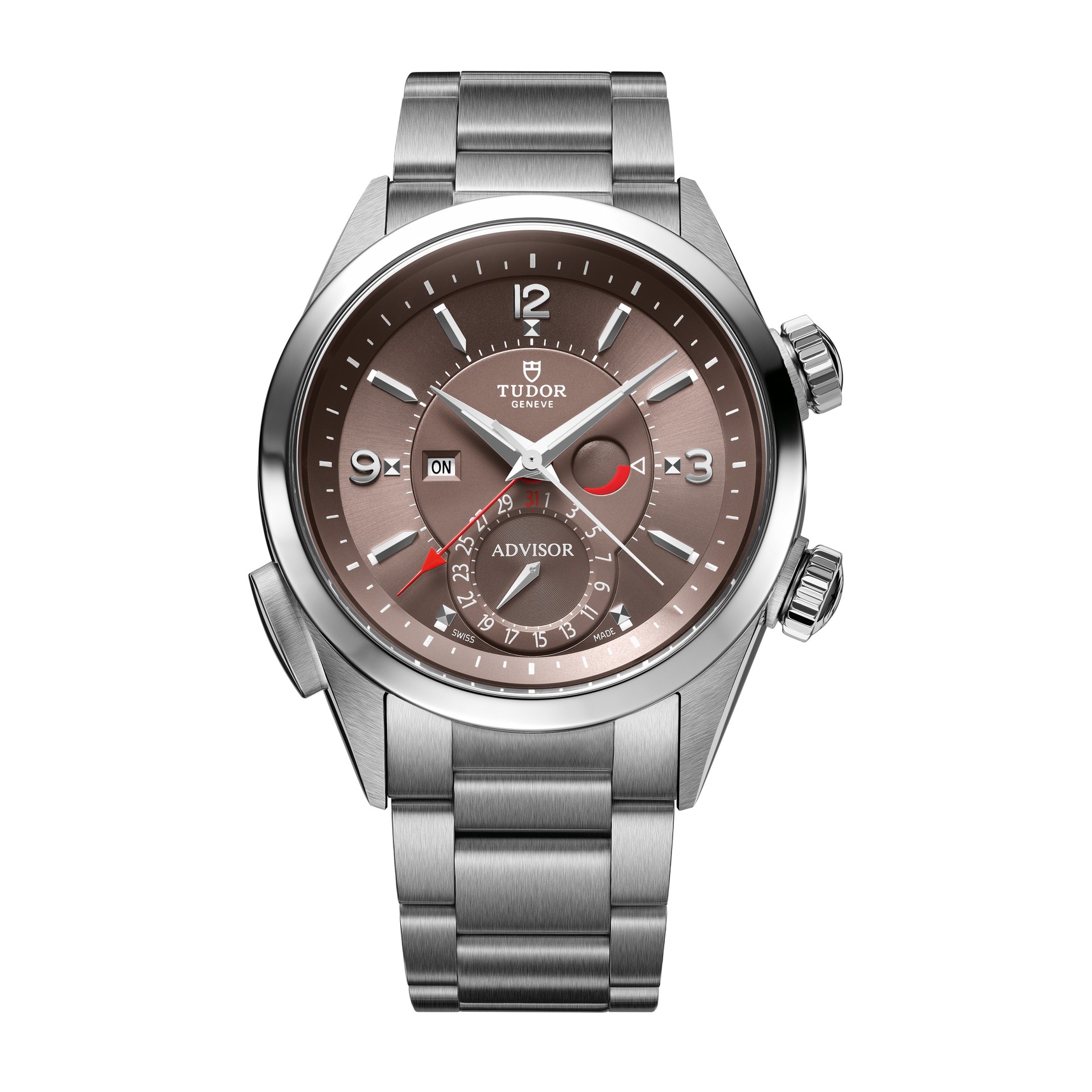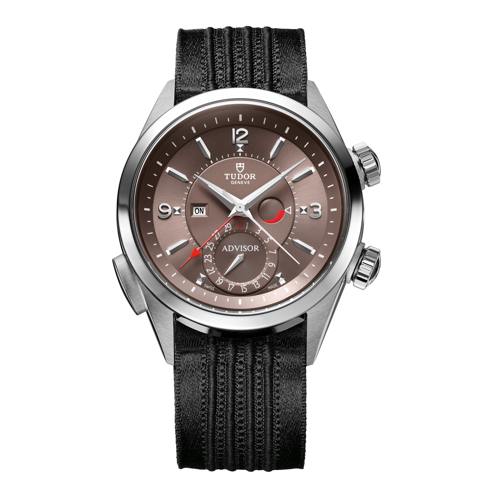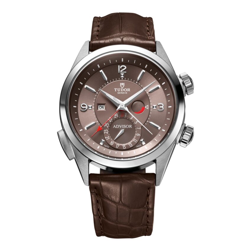 El Heritage Advisor es una reinterpretación del famoso reloj despertador de TUDOR de 1957. Es una versión actualizada del clásico que mantiene la forma y las dimensiones originales de la caja, las asas y el cristal, las agujas “dauphine” y los índices biselados, además del diseño y el color de la aguja de alarma roja. La caja es de titanio, y con ella se logra una calidad de sonido excepcional para la alarma. Su tamaño se ha aumentado de 34 a 42 mm para adaptarla a las preferencias actuales. El modelo presentado en Basilea incorpora una combinación nueva de correa y esfera en color coñac.