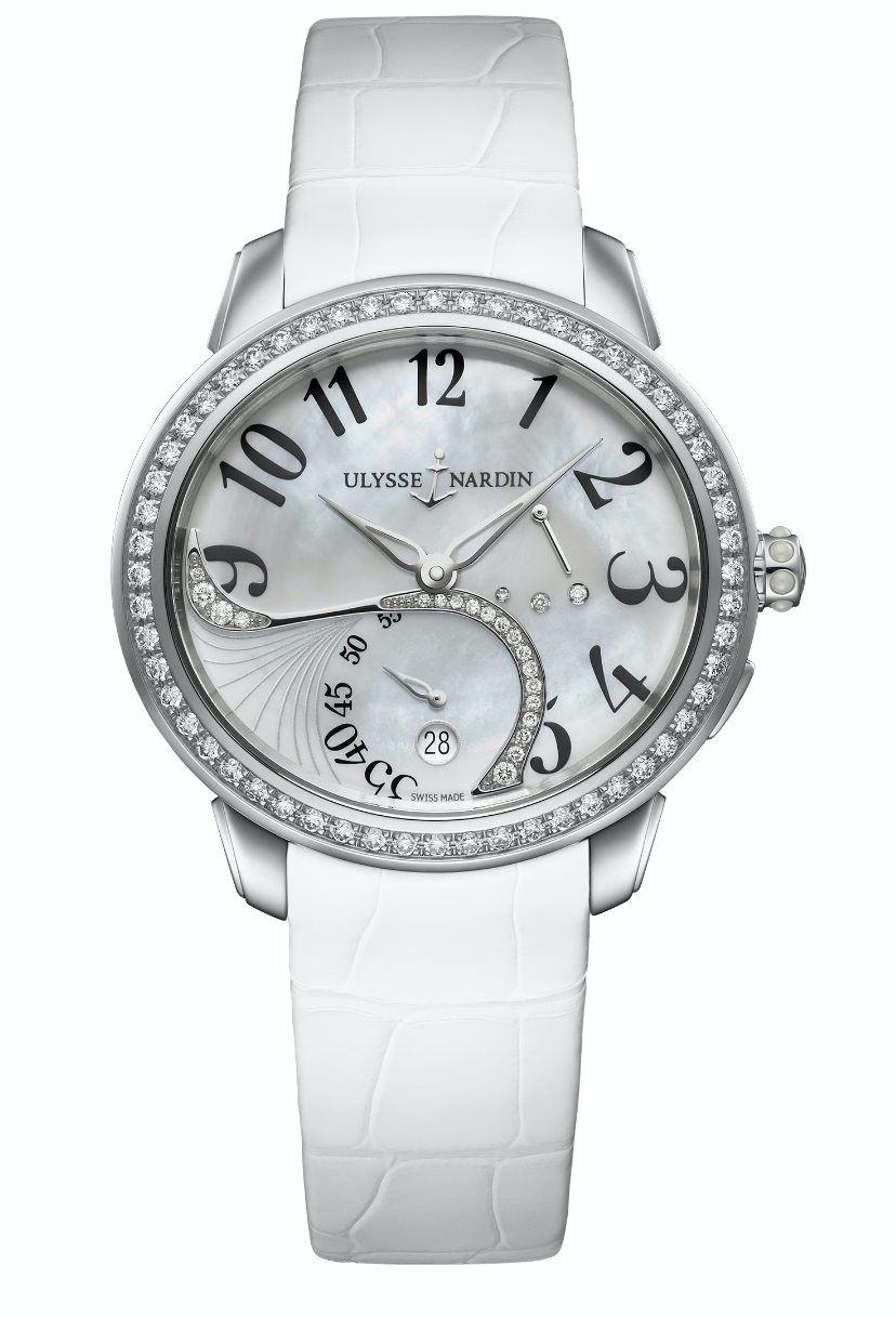 La pieza presentada hace algunos años se ha posicionado rápidamente en la mente de la clientela femenina, y tal es la intención de Ulysse Nardin por conquistar este mercado que dotó a la pieza de un mecanismo in-house exclusivo (UN-310), que goza de escape de silicio y autonomía de 48 horas. La carátula madreperla es decorada por los diamantes tanto del bisel como del indicador de reserva de marcha. Se presenta en caja de acero inoxidable con dimensiones de 36 x 39 milímetros, y se abraza a la muñeca mediante una pulsera de piel de cocodrilo blanco.