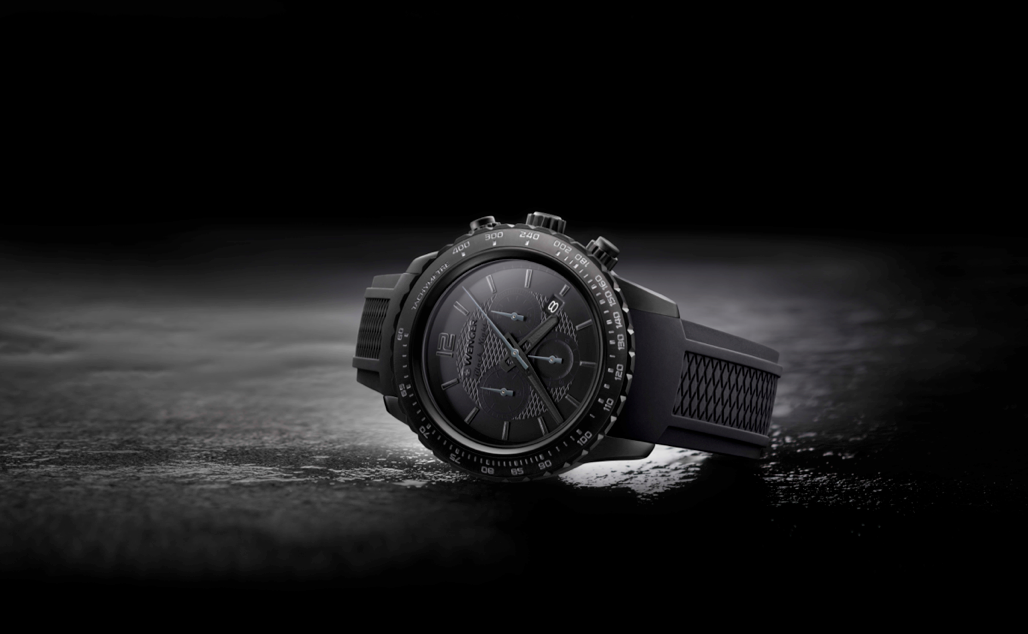 Animada por un movimiento de cuarzo Swiss Made (Ronda), la pieza es ensamblada en el atelier de la Casa situado en Delémont. Su estética destaca gracias a los generosos 45 mm de diámetro de extensión para la caja, mientras que la potencia de su diseño está garantizada gracias a una configuración que emplea al negro –PVD– y al rojo como protagonistas. Sus índices –tipo Wenger– son luminiscentes, garantizando una perfecta visibilidad en situaciones de poca luz, mientras que las horas, minutos, segundos y fechador, se visualizarán con tan solo mirar de reojo la carátula, o si lo prefiere podrá optar por una referencia de cronógrafo.