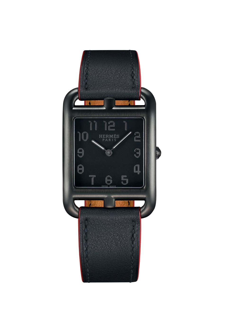 La emblemática caja se extiende en 29 X 29 centímetros, como aquella primera diseñada en 1991 por Henri d’Origny, no obstante el acero está recubierto con un tratamiento DLC negro mate, con lo que no hay que cursar cálculo avanzado para conceder un aplauso al nombre Shadow. De igual manera Hermès no solo hace relojería, es una verdadera Maison y una de sus más grandes virtudes, la primera, es la creación de la mejor pelleteria, por lo que en este sentido los bordes de la correa de becerro Barénia color negro se han teñido de rojo, dando como resultado una pieza masculina, atemporal y en sintonía con lo que un hombre busca de su compañero diario: que su mejor amigo sienta un positivo celo hacia su reloj. Animado por un calibre de cuarzo de alta precisión, este reloj marca las horas y minutos con el prestigioso sello Swiss Made.