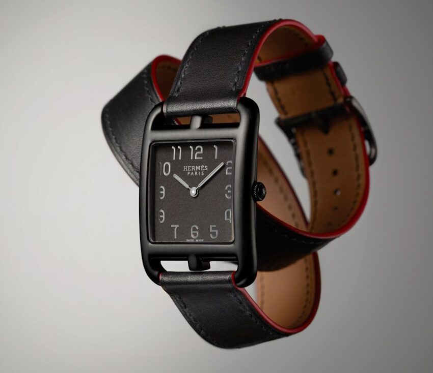 La leyenda: “Cape Cod es un icono nacido de un carácter indómito, el de Henri d’Origny, cómplice de la Maison, a quien Hermès pidió que diseñara un reloj cuadrado. Pero el creador tenía otra idea. Prefirió dar una respuesta casi irreverente. Decidió que el Cape Cod sería un cuadrado dentro de un rectángulo”.