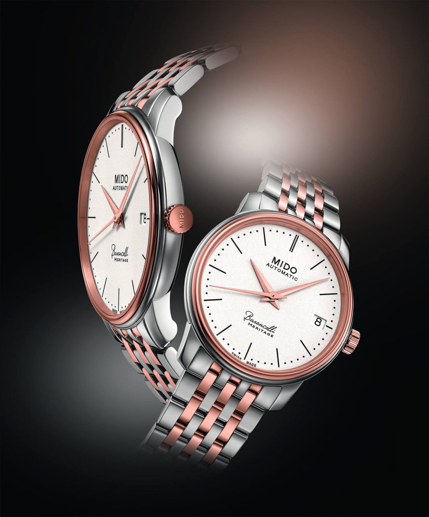 Precisamente siendo de Le Locle, el mero centro de la relojería Suiza, Mido ha hecho de varias piezas un ícono de su manufactura y dentro de ellas el Baroncelli es uno de los mejores ejemplos y creado en pares. Este año la especial combinación de su caja y correa de acero con elementos en PVD rosa, albergando su movimiento automático 1192 con 42 horas de reserva de marcha, lo vuelve a posicionar como uno de los clásicos para modelos de herencia pura de la marca. Un reloj para parejas, hecho en parejas y con la misión de unir la mejor estética y confiabilidad de Baroncelli.
