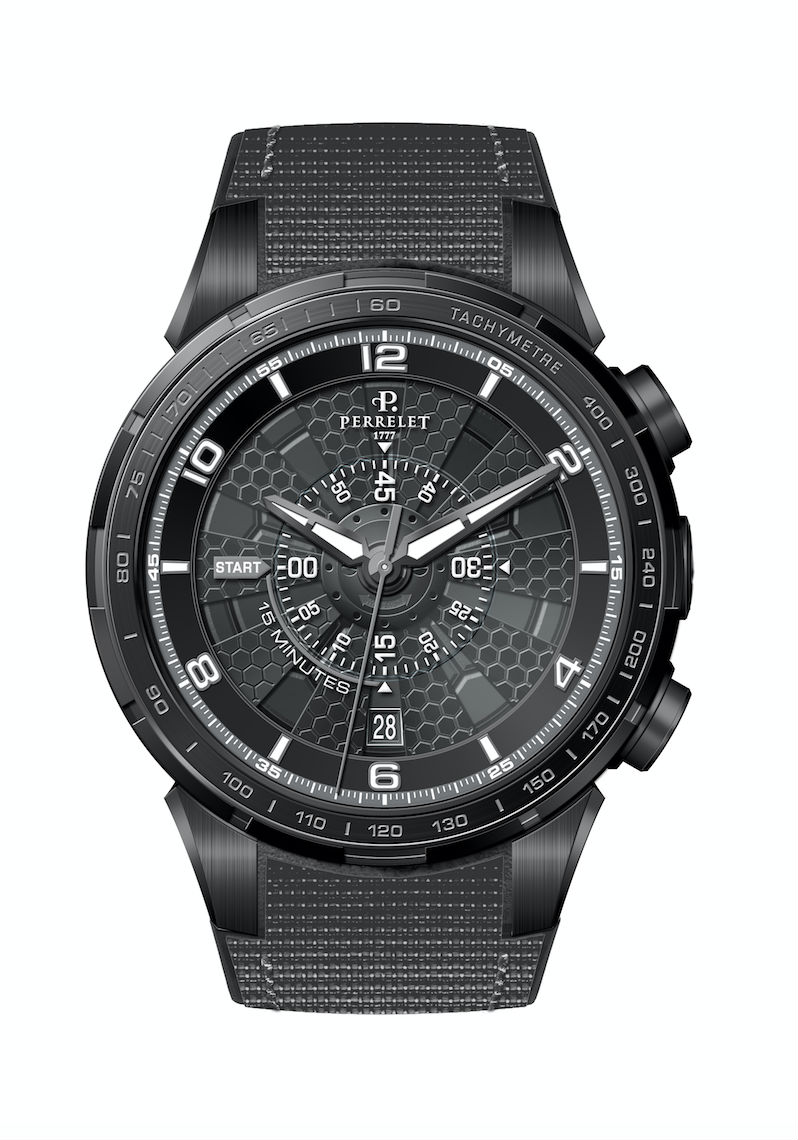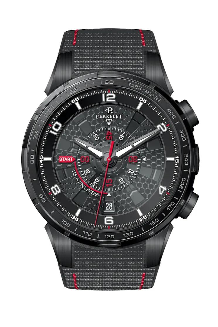 Tomando como inspiración el mundo del soccer, Perrelet lanzó una nueva pieza cargada de adrenalina y precisión. Con el mismo mecanismo desarrollado en el 2009, el Turbine Chrono Sport integra un cronógrafo y una visualización inmediata de un disco suplementario hecho de cristal de zafiro. Con tan solo oprimir el botón situado a las 14 horas, el segundero central del crono se pondrá en marcha y el tiempo se mostrará en el disco central. Disponible en dos versiones limitadas a 77 piezas, ambos modelos cuentan con un movimiento automático P-361 y una reserva de marcha de 42 horas.