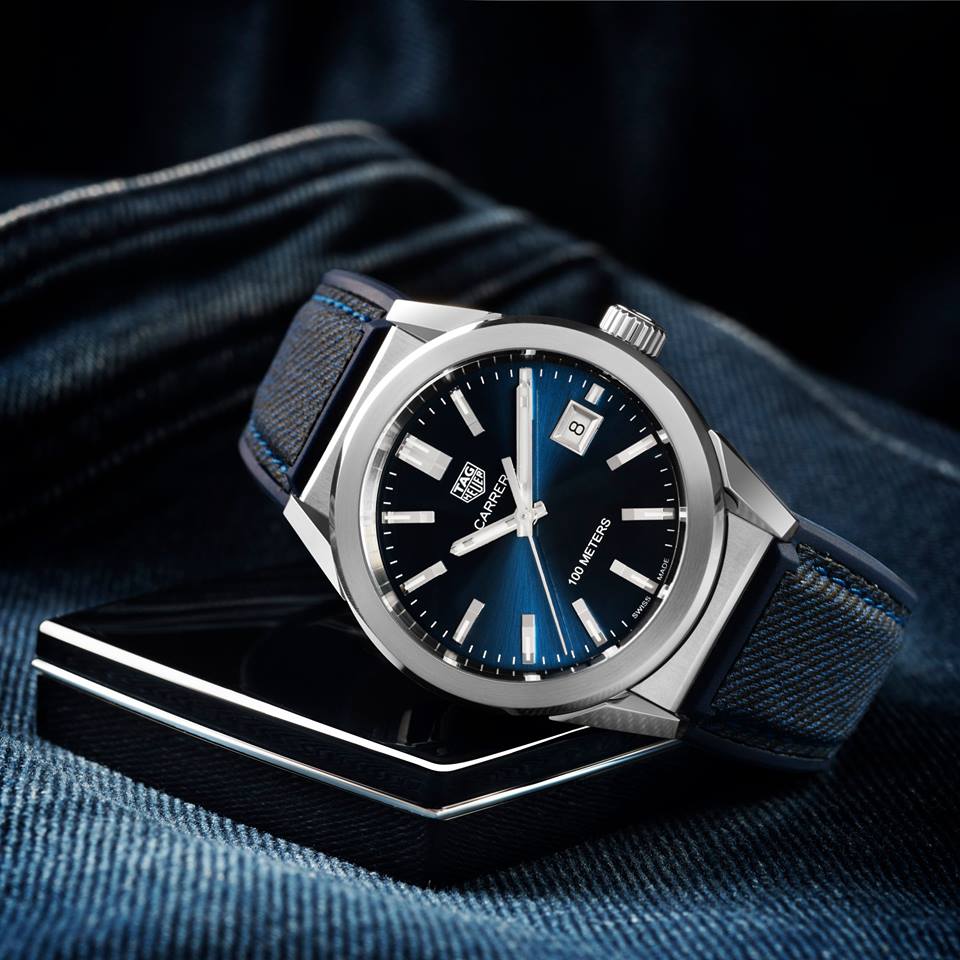 El oro ha sido añadido a la colección a partir de la construcción versátil de la caja de 45 mm de diámetro. Al interior late el motor de cronógrafo Heuer 01, su carátula semi-esqueletada invita a verlo trabajar, mientras que se abrazará al pulso mediante una correa de piel de becerro con caucho.