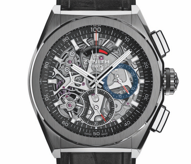 A fin de ofrecer lo mejor en el mercado, Zenith lanzó un nuevo movimiento de cronógrafo que indica las centésimas de segundo. El Defy El Primero 21, se encuentra desarrollado con dos reguladores hechos con un material composite de nanotubos de carbono insensibles a los campos magnéticos y las altas temperaturas. La precisión y la fiabialidad nunca había sido tangible hasta que llegó esta pieza de Alta Frecuencia con certificación COSC y una reserva de marcha de hasta 50 horas. A través de una aguja central, 10 veces más rápida que la de los modelos anteriormente conocidos, el Defy El Primero 21 indicará con exactitud las centésimas de segundos de una manera sencilla y revolucionaria. Posee un sistema adicional al cronógrafo con su propio órgano regulador a frecuencia de 50 Hz (360,000 a/h), con lo cual la trotadora dará una vuelta al dial por segundo, la segunda lectura posibilitará dividir el tiempo de una manea en la que nunca antes se había conseguido.