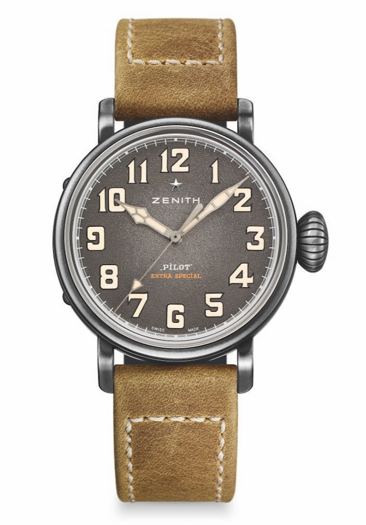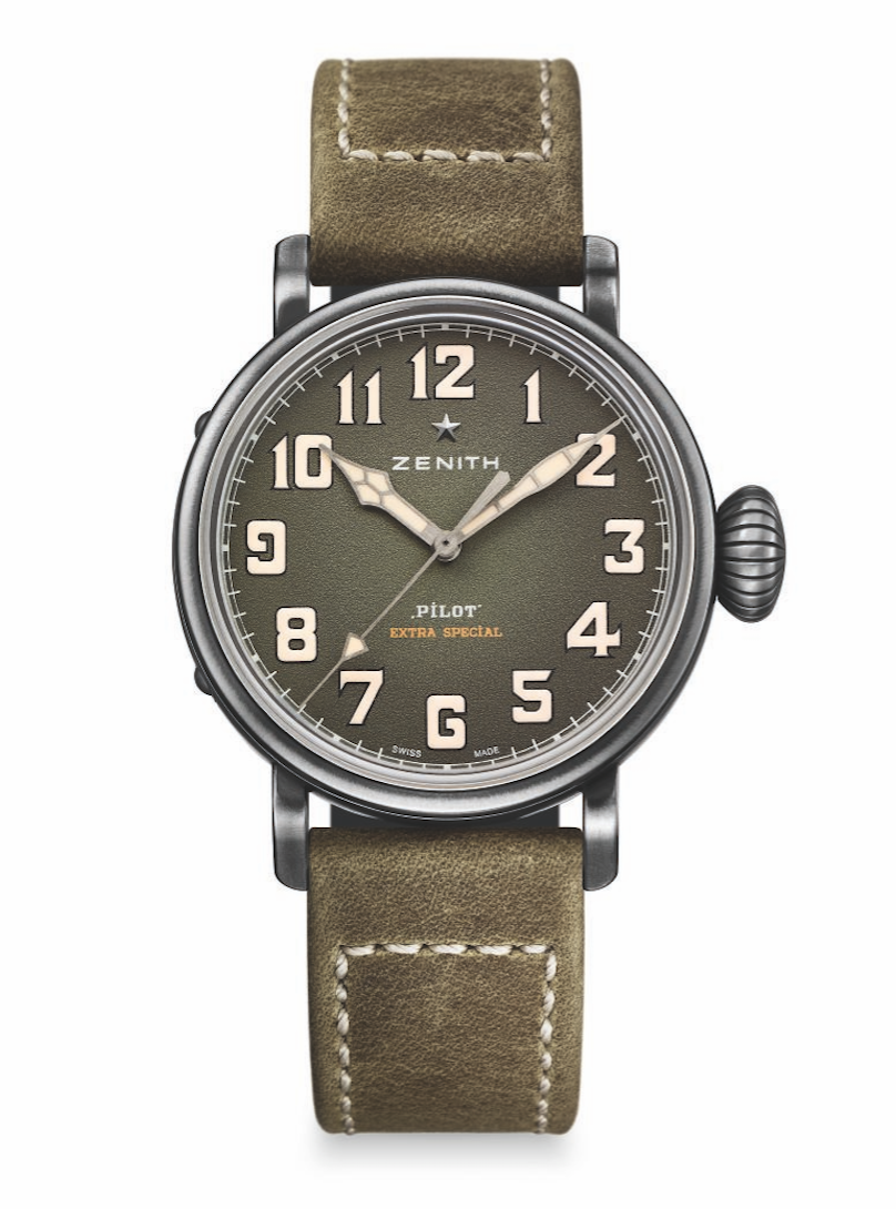 Para todos los apasionados de la aviación, llega el nuevo Pilot Extra Special cargado de actitud por conquistar el aire y el tiempo. Este modelo que se caracteriza por su cronógrafo y un diseño vintage, habita en una caja de 45 mm protegida por una carátula luminiscente con cristal de zafiro abombado. Su mecanismo que late a un ritmo de 5 Hz producido por un calibre El Primero 4069, muestra el tiempo con una precisión de una décima de segundo. Este modelo se ajustará a la muñeca de hombre que va en busca de nuevos horizontes a través de una correa de nobuk oleoso en verde caqui con detalles en beige.