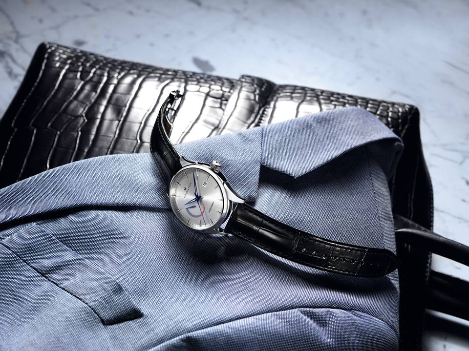 El modelo más clásico de la marca lanza un calibre 80 con indicación de la reserva de marcha, carátulas y estructura mucho más señoriales que lo que generalmente conocemos. Esta tradicional y útil complicación relojera ha sido reinterpretada en un elegante arco de puntas rojas que se ajusta con elegancia al diseño del Jazzmaster. El nuevo mecanismo H-13, manufacturado especialmente para Hamilton, cuenta con una elegante decoración y es visible a través del fondo, confiriéndole un aspecto completamente relojero.