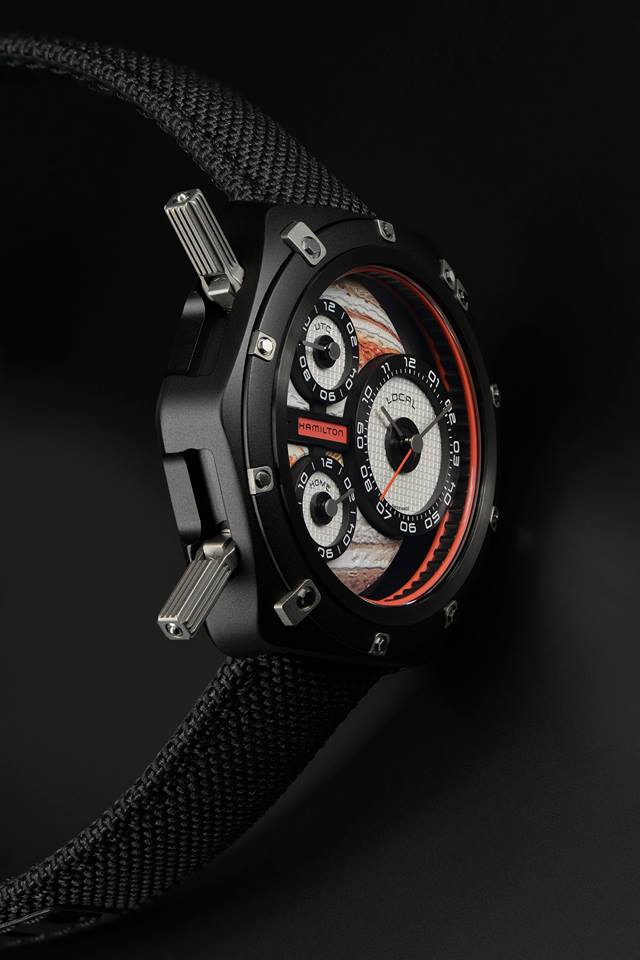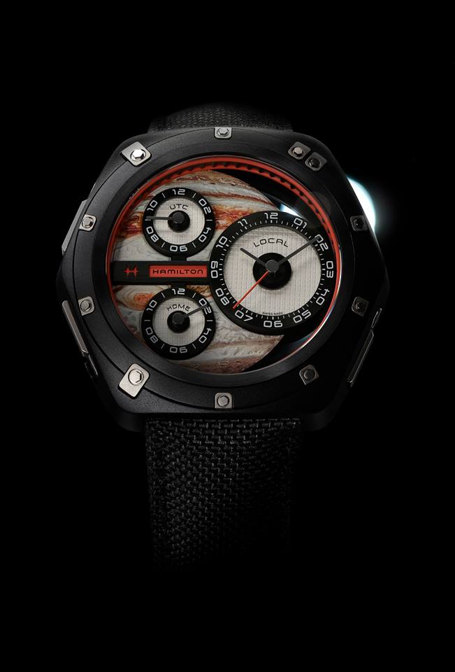 Hamilton ha decidido celebrar estos dos éxitos emblemáticos con la creación de un reloj extraordinariamente audaz, el ODC X-03. Inspirado en la nave espacial Endurance de Interstellar, el modelo ODC X-03 es fruto de una reunión en los Premios Behind the Camera Awards (BTCA) 2014 que Hamilton organiza cada año en Los Ángeles y China. El reloj diseñado por Nathan Crowley, diseñador de producción de Interstellar, nominado tres veces a los premios Óscar, lleva los relojes estelares a una galaxia completamente nueva. El elegante ODC X-03 Swiss Made, que refleja la calidad tradicional, el trabajo artesanal, la fiabilidad y el magnífico estilo de Hamilton, es una obra maestra realmente vanguardista. Se completa una trilogía de relojes que comenzó con la película de Stanley Kubrick 2001: Una odisea del espacio. El X-01 y el X-02, presentados respectivamente en 2006 y 2009, también se inspiraron en la que se considera una de las películas más influyentes de todos los tiempos. Al igual que su predecesor, el X-02, el ODC X-03 está impulsado por tres mecanismos diferentes (uno automático y dos de cuarzo idénticos), albergados en una robusta caja hexagonal de 49 mm por 52 mm de titanio con revestimiento PVD negro espacial.