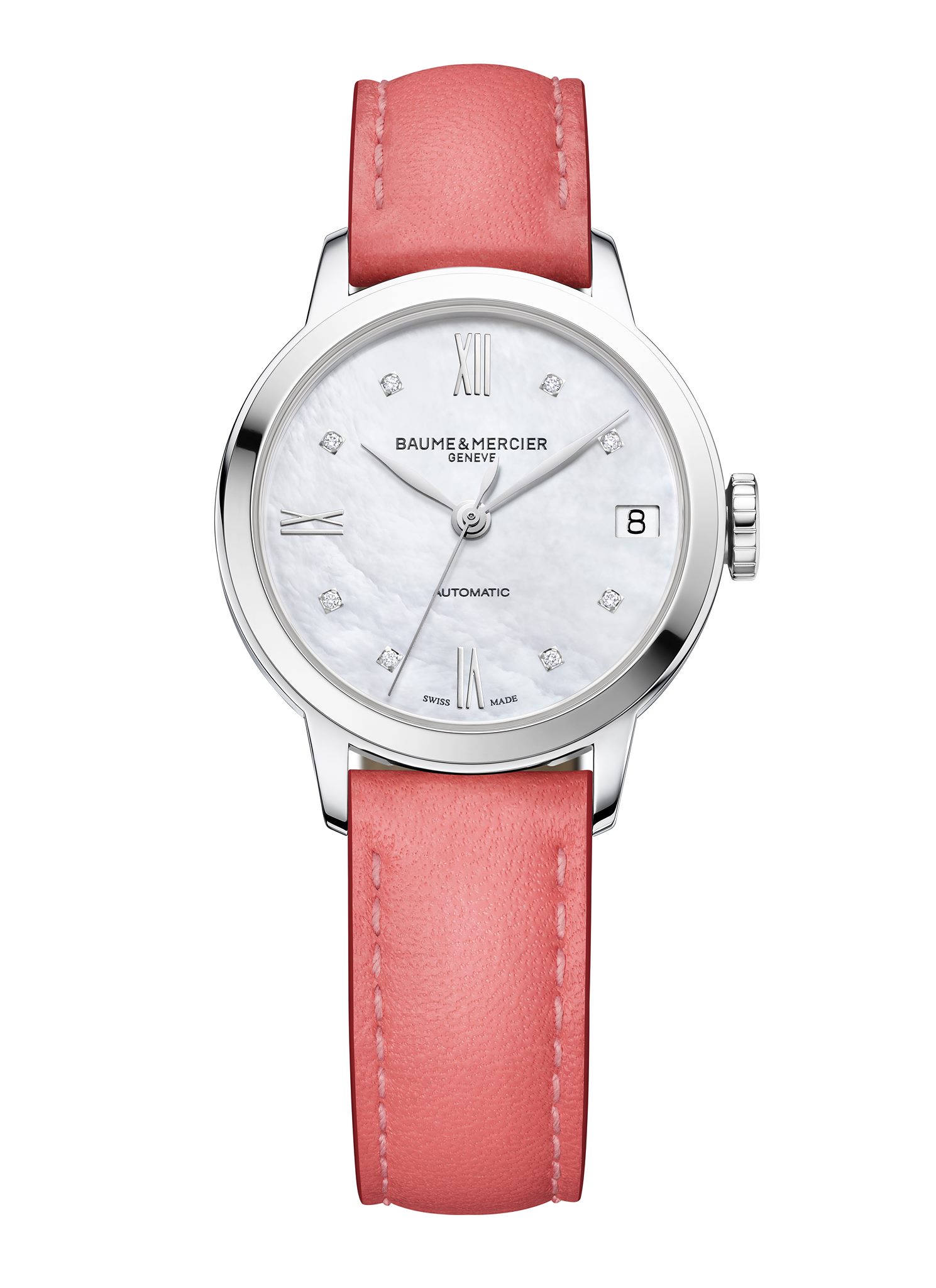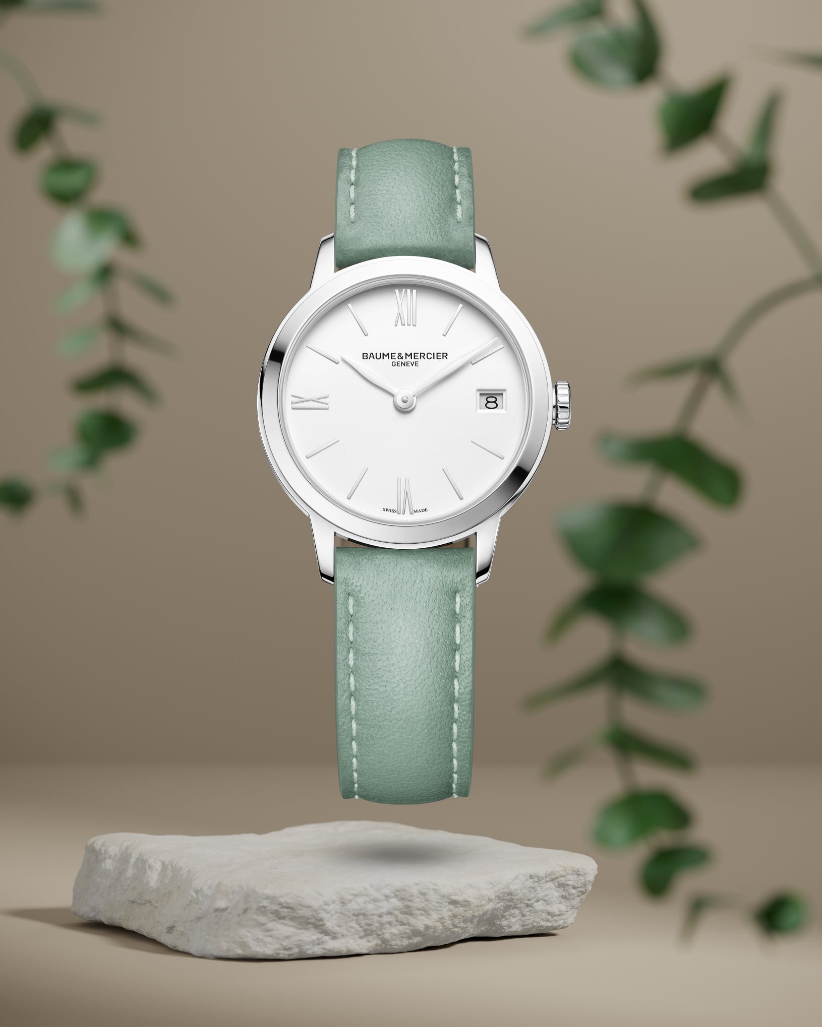 Para que las mujeres puedan jugar con los colores, Baume & Mercier presenta una colección de 11 correas de piel de becerro adicionales en tonos radiantes (océano, coral, turquesa, lima, verde, negro, orquídea, malva, maracuyá, amapola y mango), así como una correa de doble vista en tono marrón claro con pespuntes crema. Esta colección, está disponible tanto para las correas de piel como para los brazaletes metálicos, lo cual permite mezclar y combinar el reloj logrando que se adapte perfectamente al estilo de cada mujer.