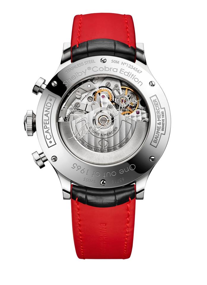 Este año, Baume & Mercier se ha acercado a la leyenda del Carroll Shelby Licensing a fin de proponer su afamado Capeland como la caja perfecta para rendir un tributo a la leyenda del AC Cobra y a su creador, que fue impulsado por Ford para competir directamente con bólidos como Ferrari. En 1965, el también conocido como Shelby Cobra (427 Cobra) sería protagonista de una competencia que cambiaría el rumbo del motoracing para siempre: el FIA International Championship para Constructores GT, restauraría el golpeado prestigio norteamericano en las competencias de automóviles.
