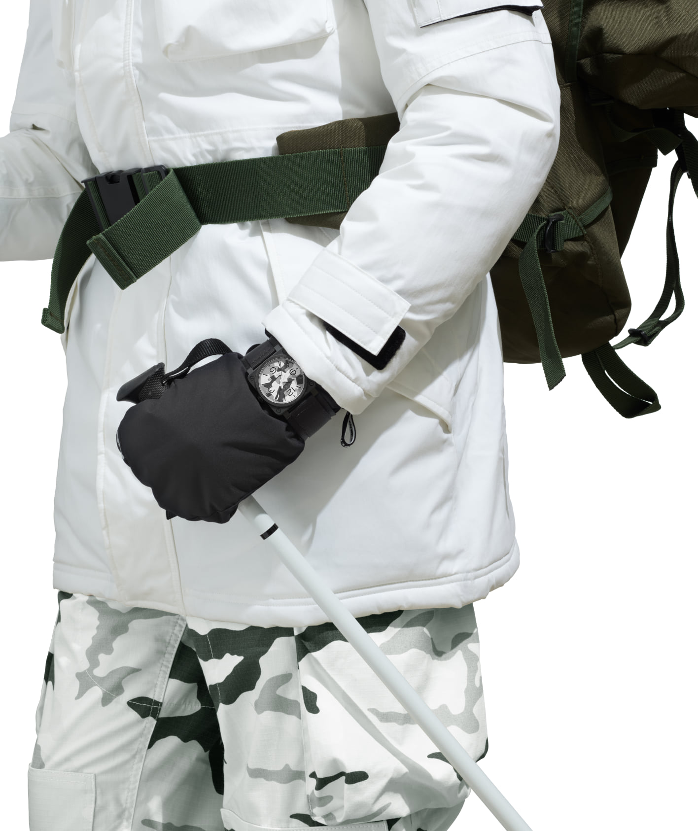 Con los estampados militares como punto de partida, el camuflaje del dial refleja el uniforme militar alpino. Esta colección está dirigida a las unidades de élite que operan de forma encubierta en las tierras altas, las laderas rocosas y las cumbres nevadas que dominan los Alpes franceses. Su equipo debe ser tan eficiente como indetectable.