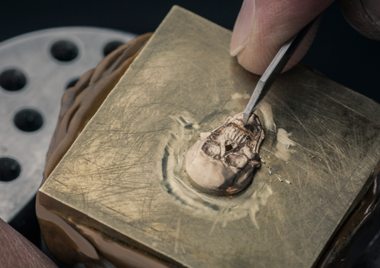 Códigos estéticos: caja de 46 mm de bronce envejecido (CuSn8) con una calavera de oro maciso grabado a mano adornando el dial. Su movimiento de cuerda manual da vida al tourbillon, regulador, indicador de precisión y reserva de marcha, mientras que el conjunto se abraza al pulso gracias a una correa de aligátor de piel marrón patinada, la pieza es única, irrepetible, y se entregará en un estuche de colección.