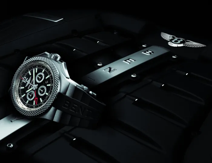 Esta exitosa sociedad de marcas de suprema experiencia les ha permitido unir fuerzas para crear piezas únicas de calidad insuperable como la línea de Breitling® for Bentley. Esta vez, el cronógrafo Bentley GMT Light Body B04 obtiene su nombre de la suma de las características que le hacen sobresalir: Bentley hace referencia a la elegancia de las poderosas máquinas británicas; GMT al sistema revolucionario de ajuste de un segundo huso horario; Light Body por su caja de titanio ultraligera; y B04 indica el calibre, que fue desarrollado y fabricado en los talleres de Breitling Chronométrie.