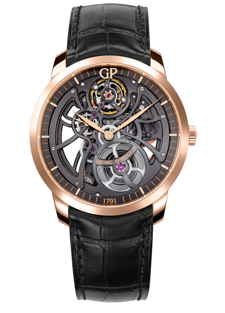 Desarrollado al interior de la manufactura, este calibre recibe un tratamiento galvánico a fin de colorear sus superficies en una tonalidad antracita, está conformado por 173 componentes, visibles –en su conjunto– gracias a la transparencia de dos cristales de zafiro que se acoplan a una caja de 38 mm de diámetro construida en oro rosa de 18 quilates.