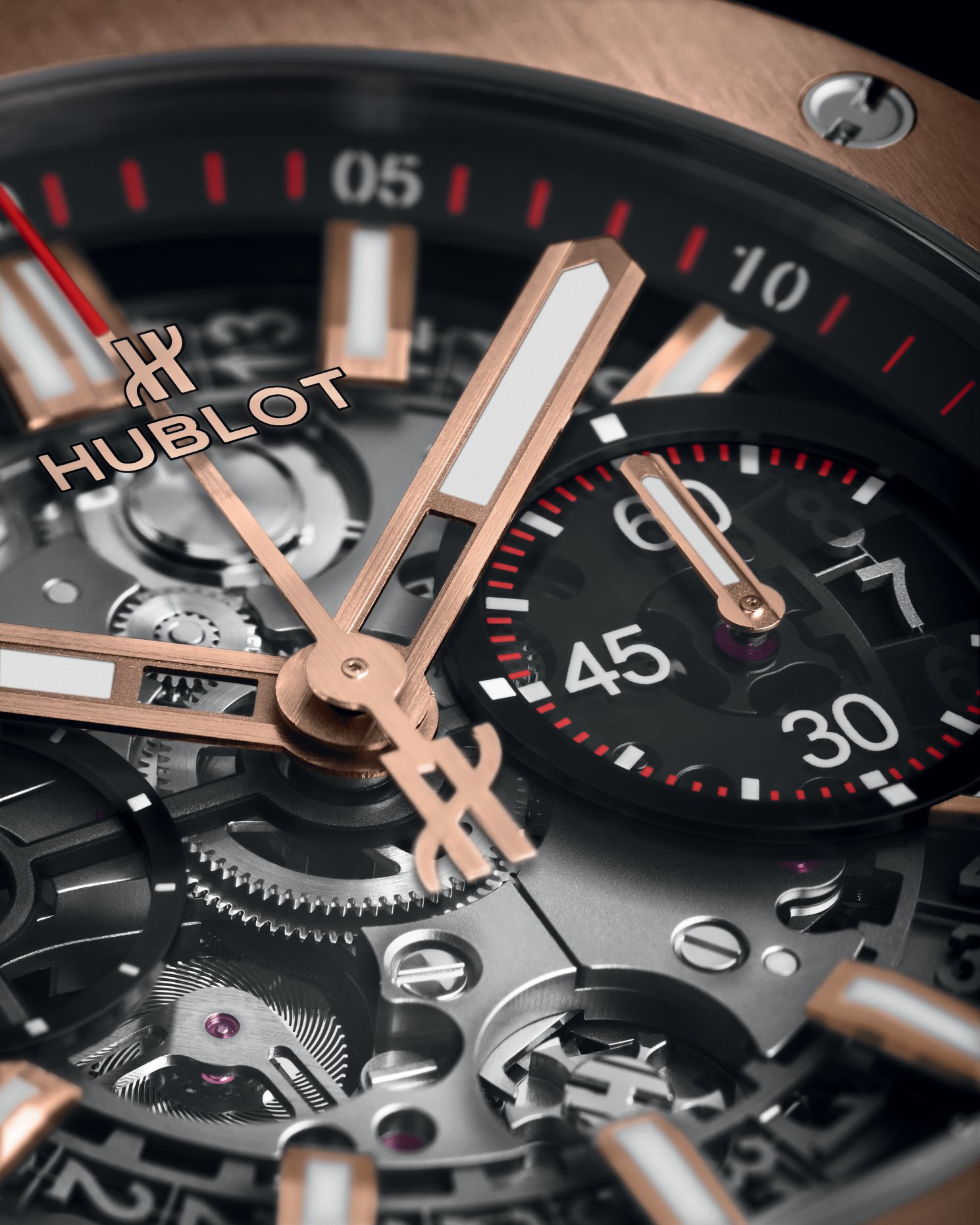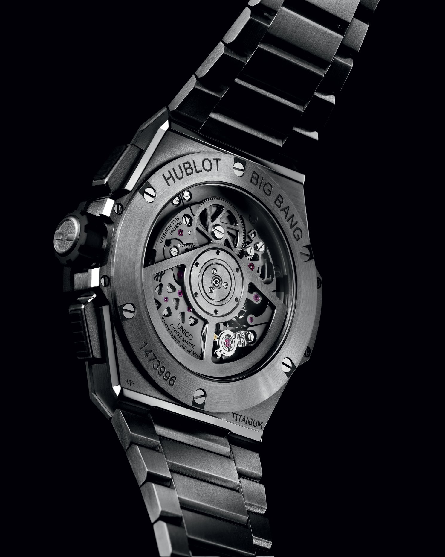 Dotado de un calibre cronógrafo manufactura HUB1289, el movimiento Unico-V2 es de cronógrafo con embrague horizontal y rueda de pilares. Es visible debido a la construcción de la carátula desnuda. Y está dotado de 3 días de autonomía.
